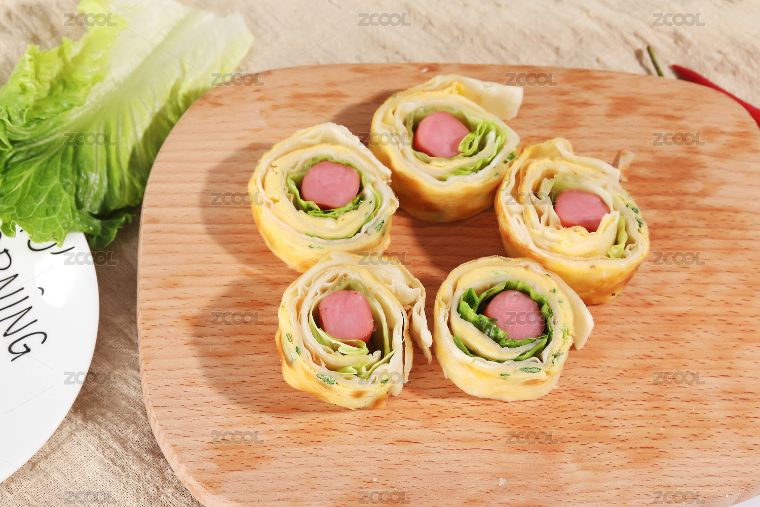 格子背景布上一碟法風(fēng)火腿蛋燒餅