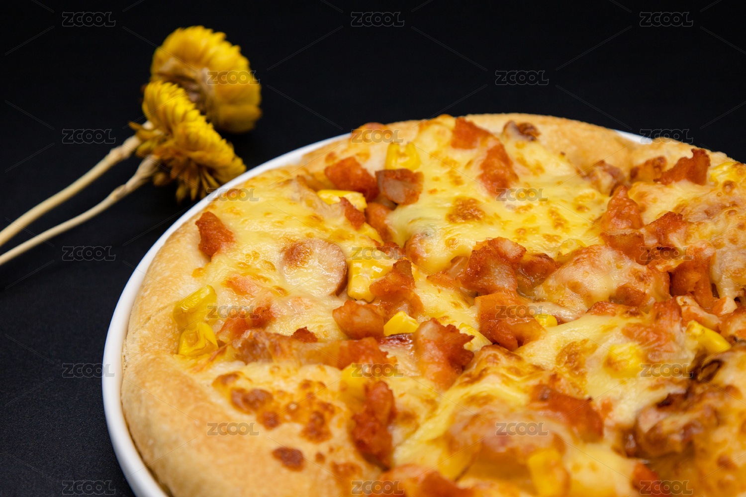 黑背景一盤西式披薩