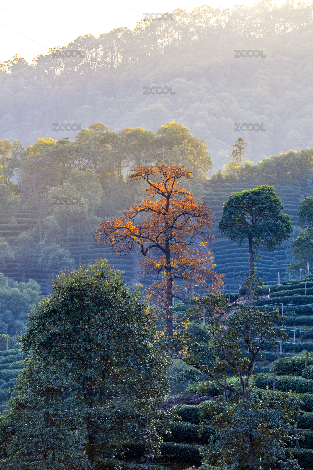 杭州梅家塢茶園里的烏桕樹
