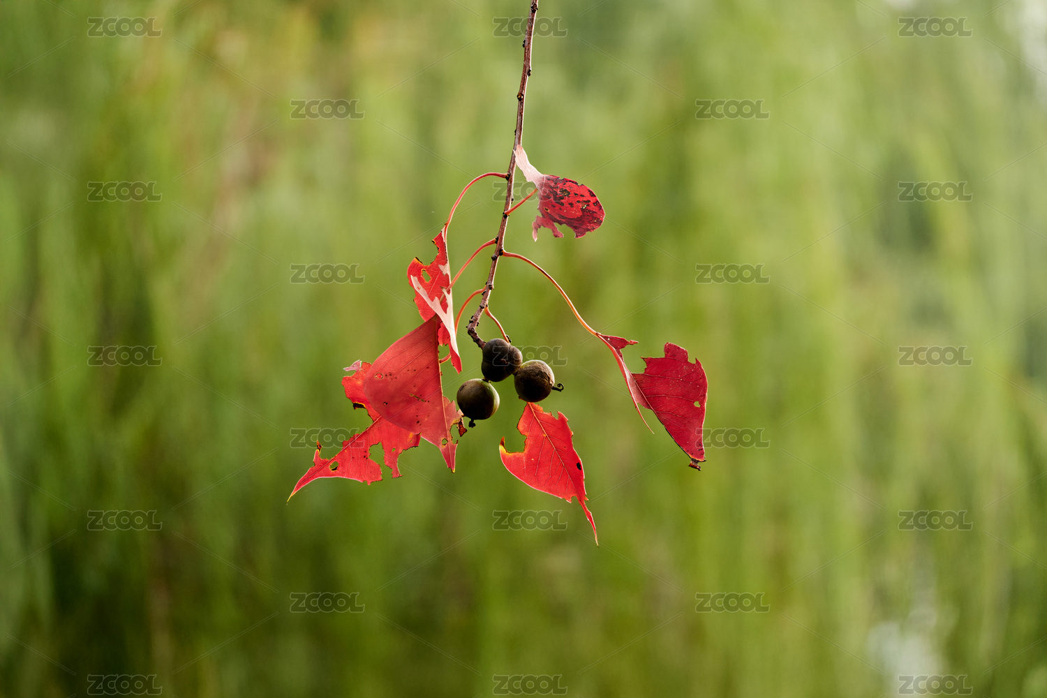 深秋季節(jié)紅色的烏桕樹葉子