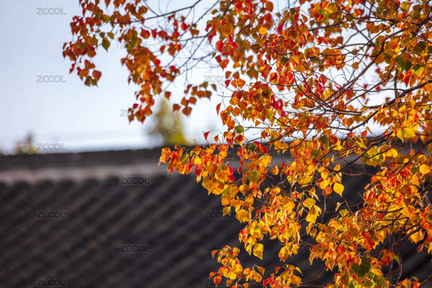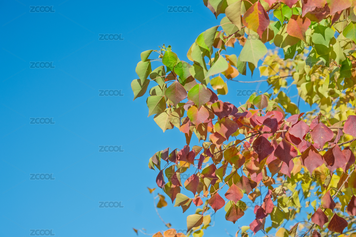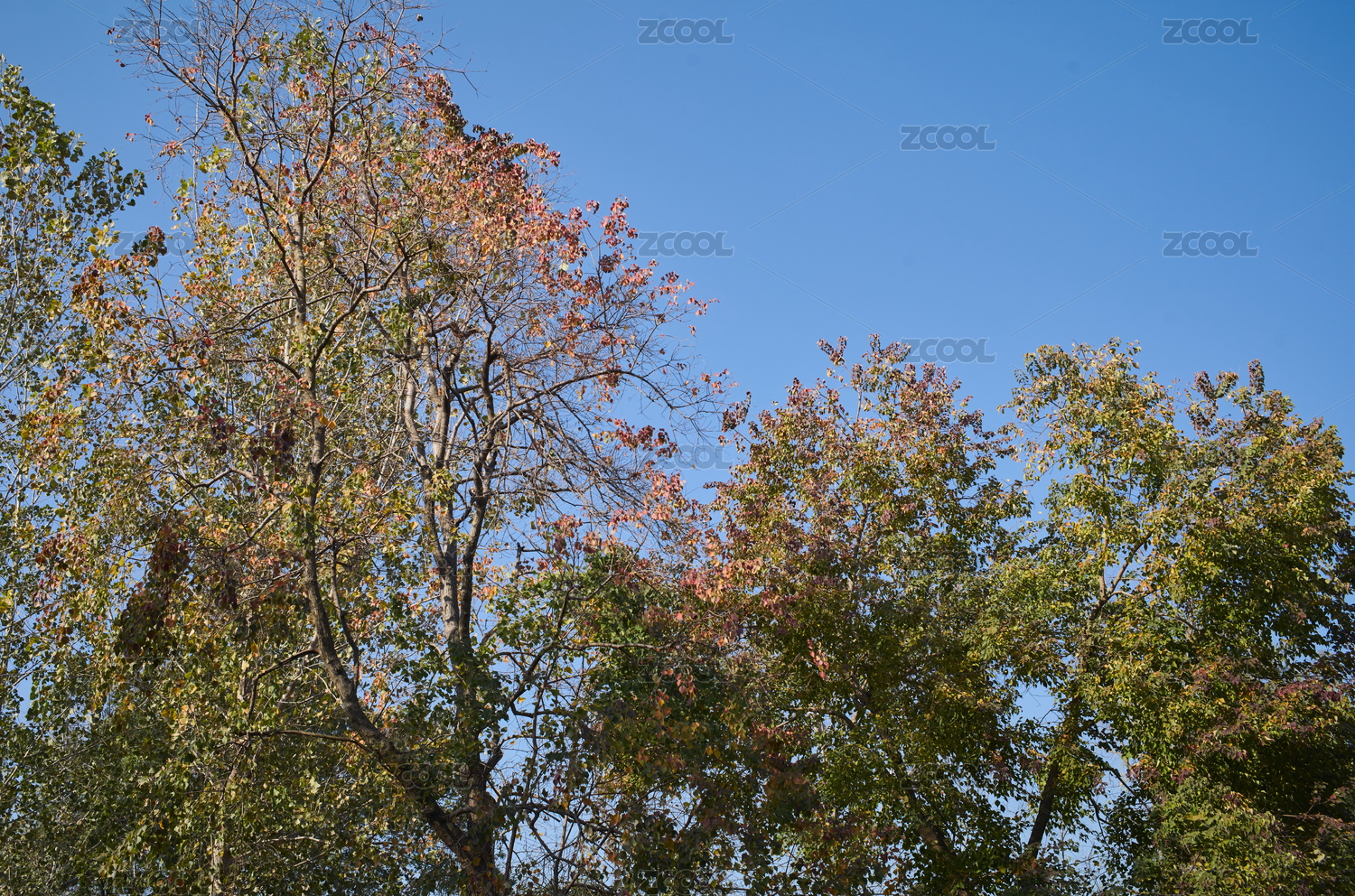 秋日藍天下色彩鮮艷的烏桕樹