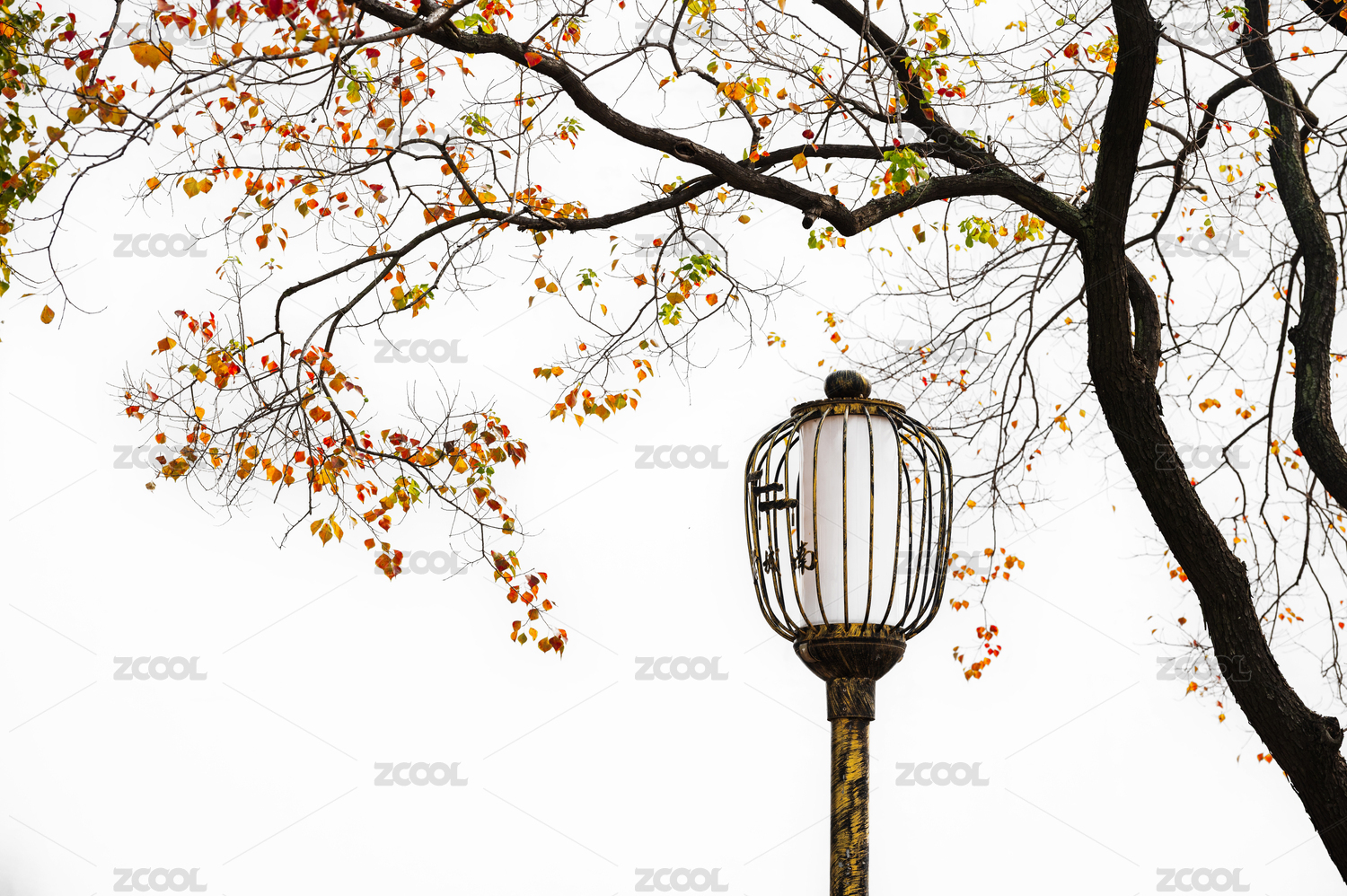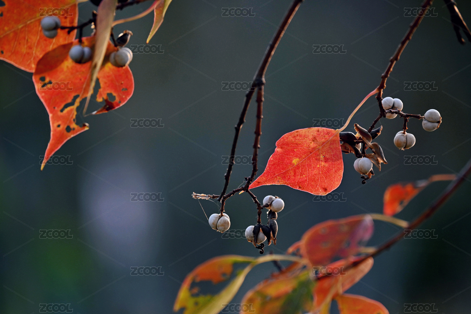 秋日里烏桕樹枝上掛著紅葉與果實