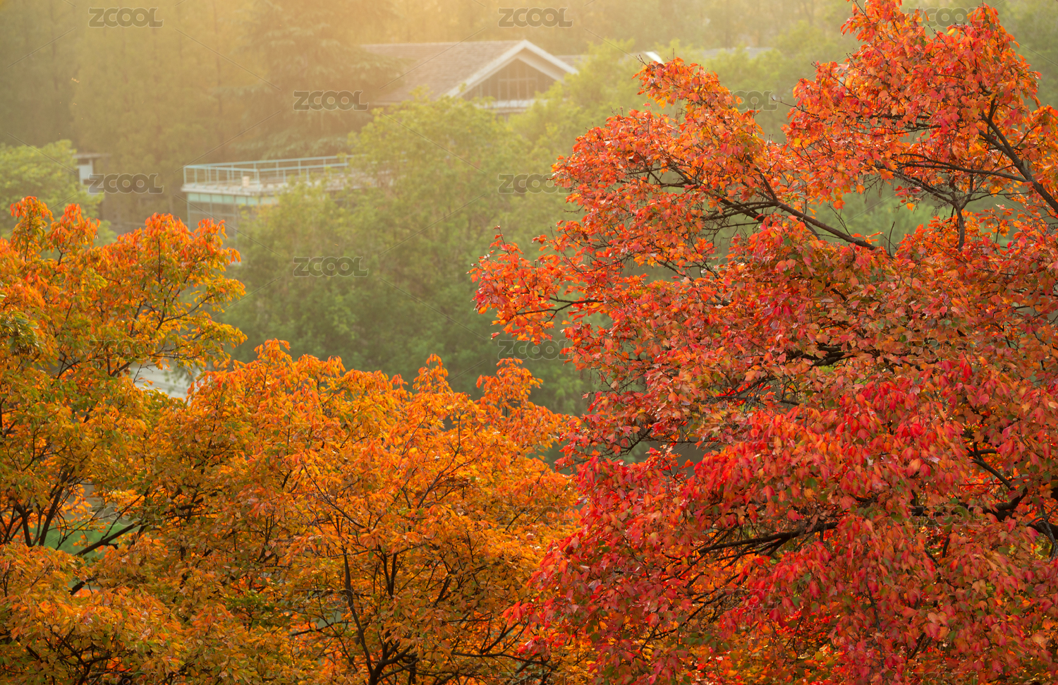 溫暖陽光下色彩斑斕的烏桕