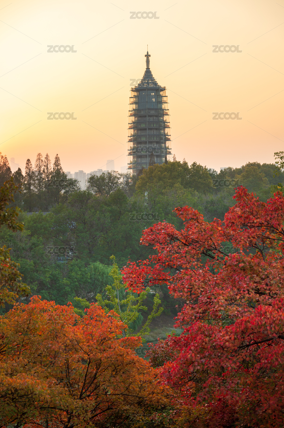 秋天城墻邊的烏桕樹