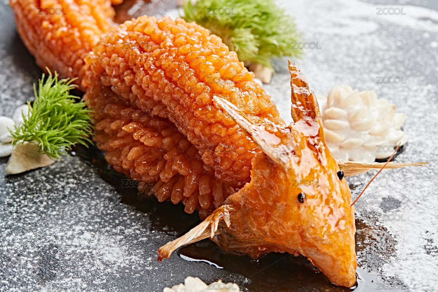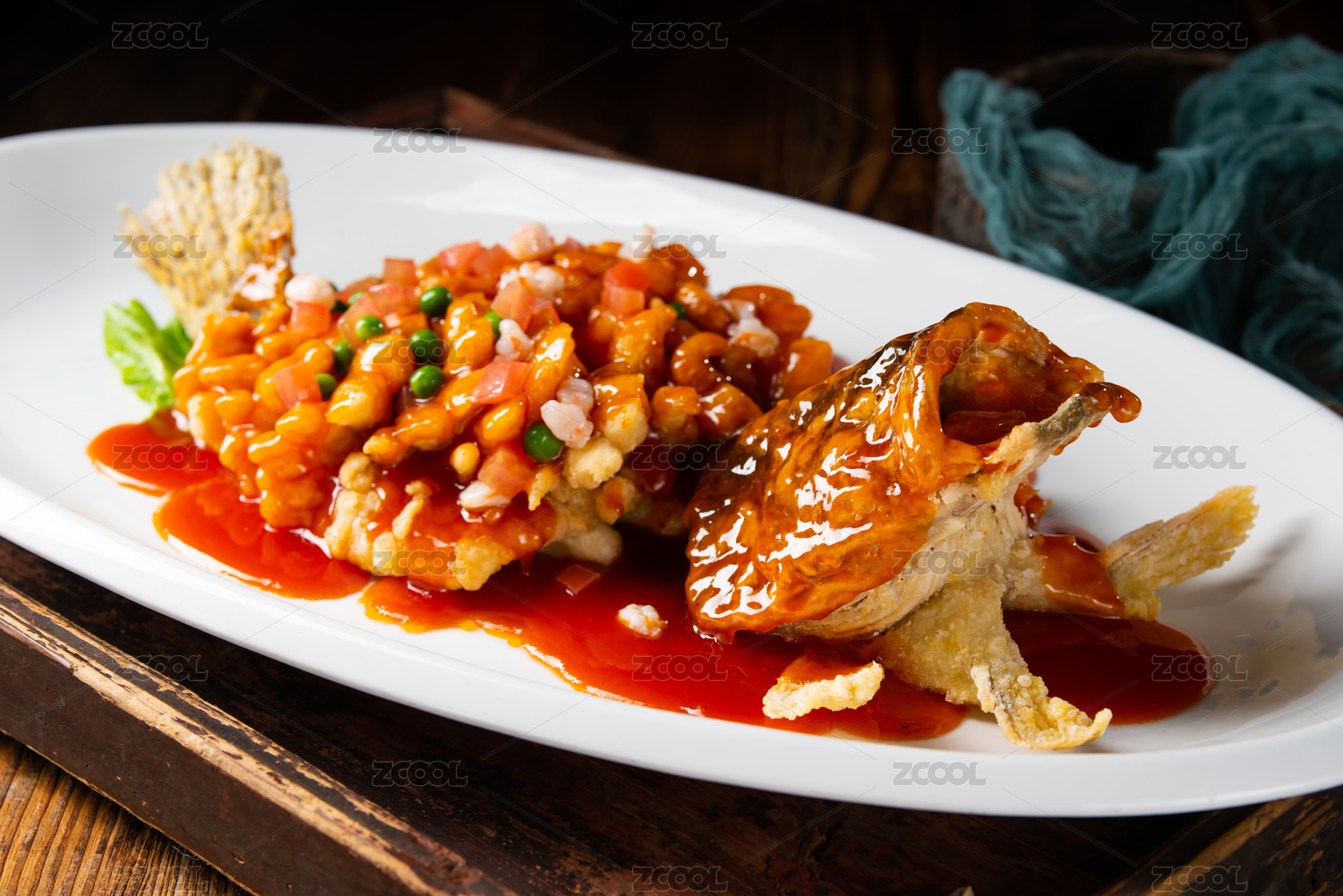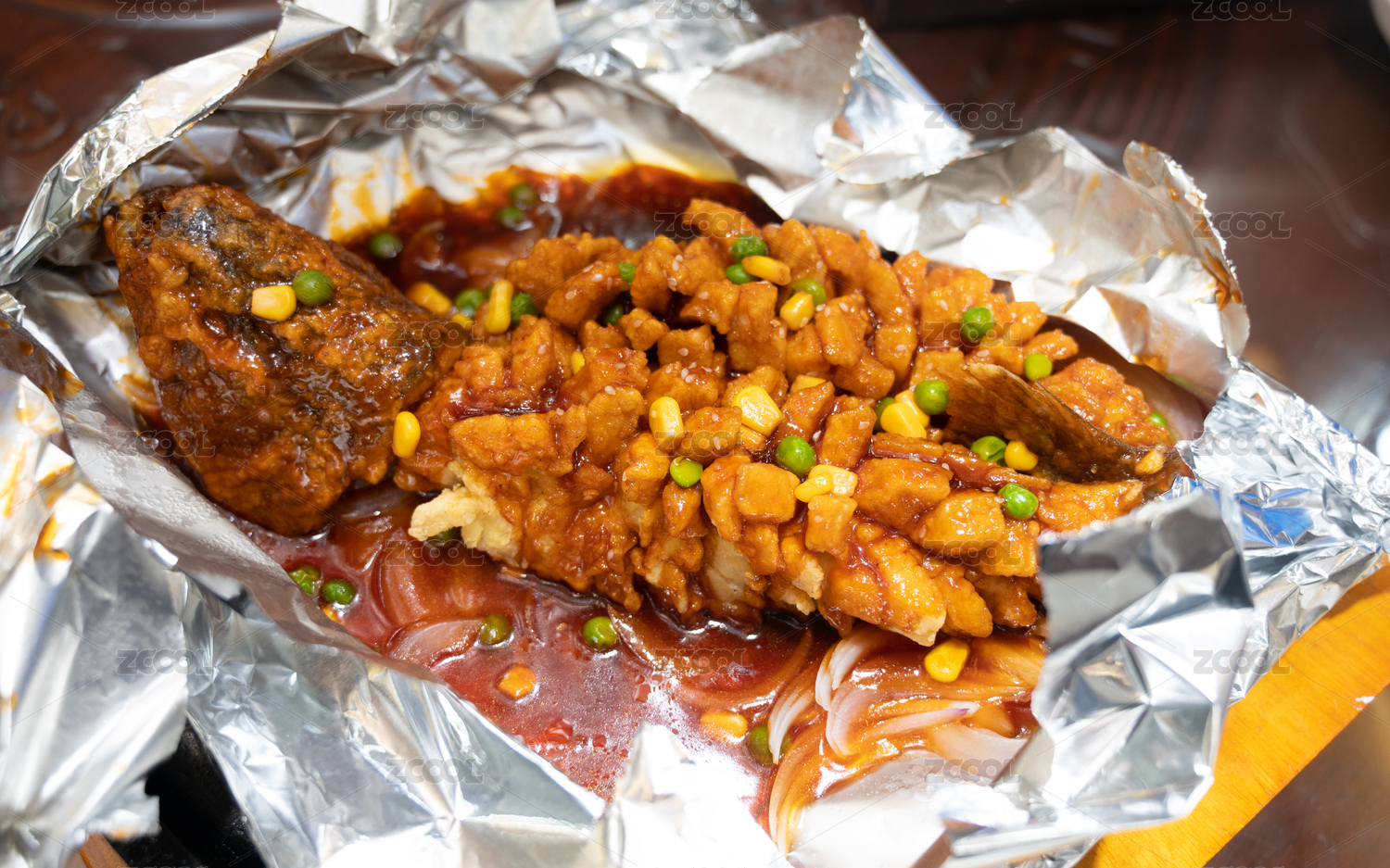 錫紙包裹的中國菜靜物美食松鼠鱖魚