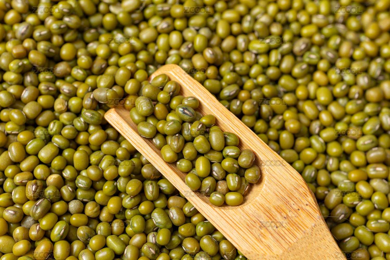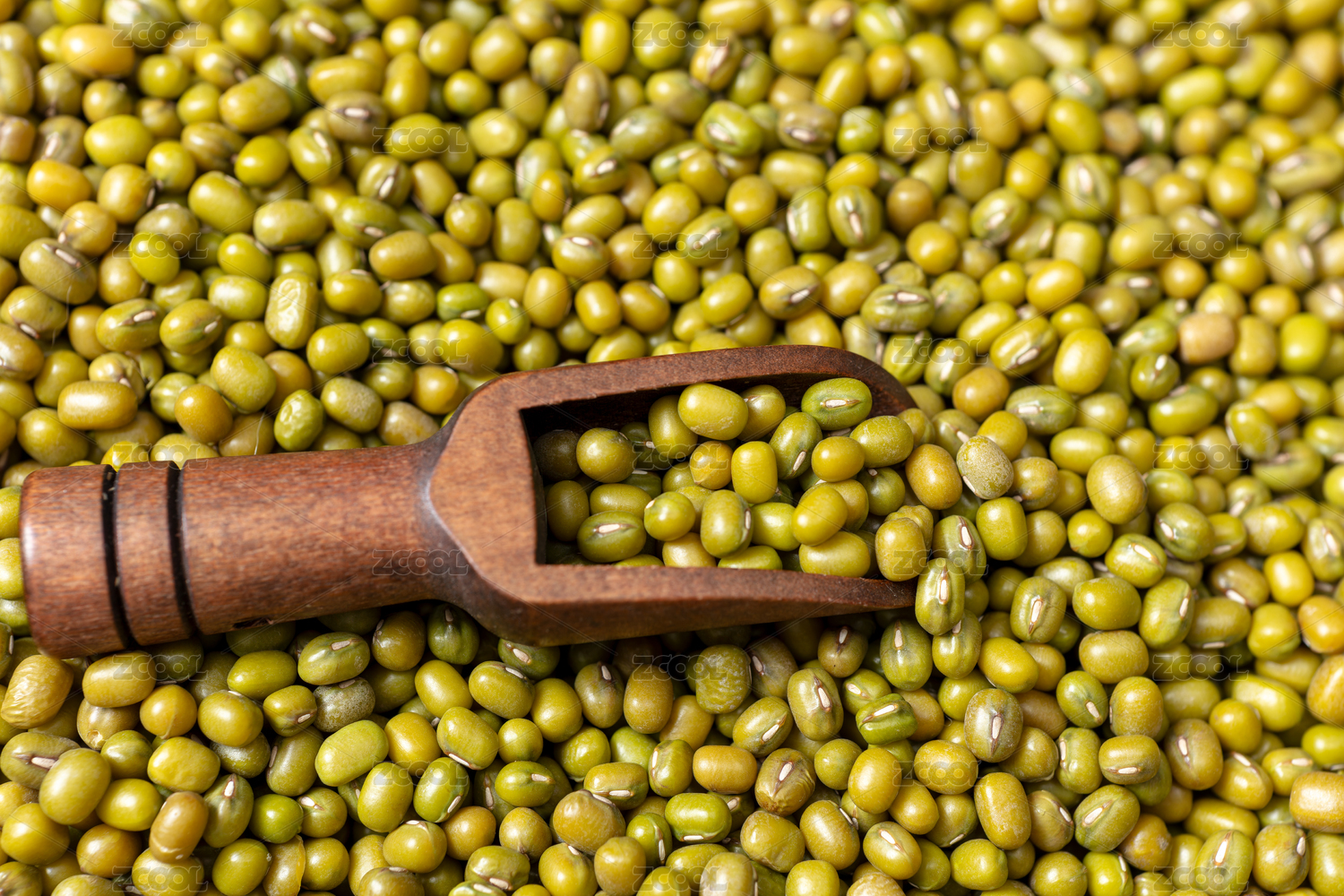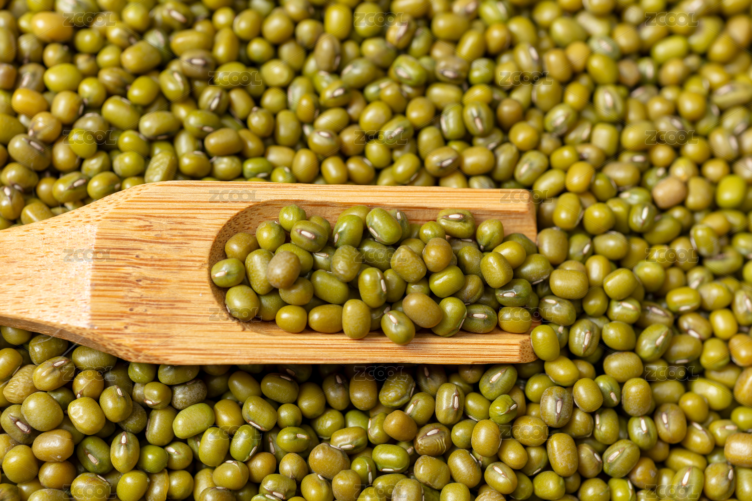木勺中的飽滿新鮮綠豆
