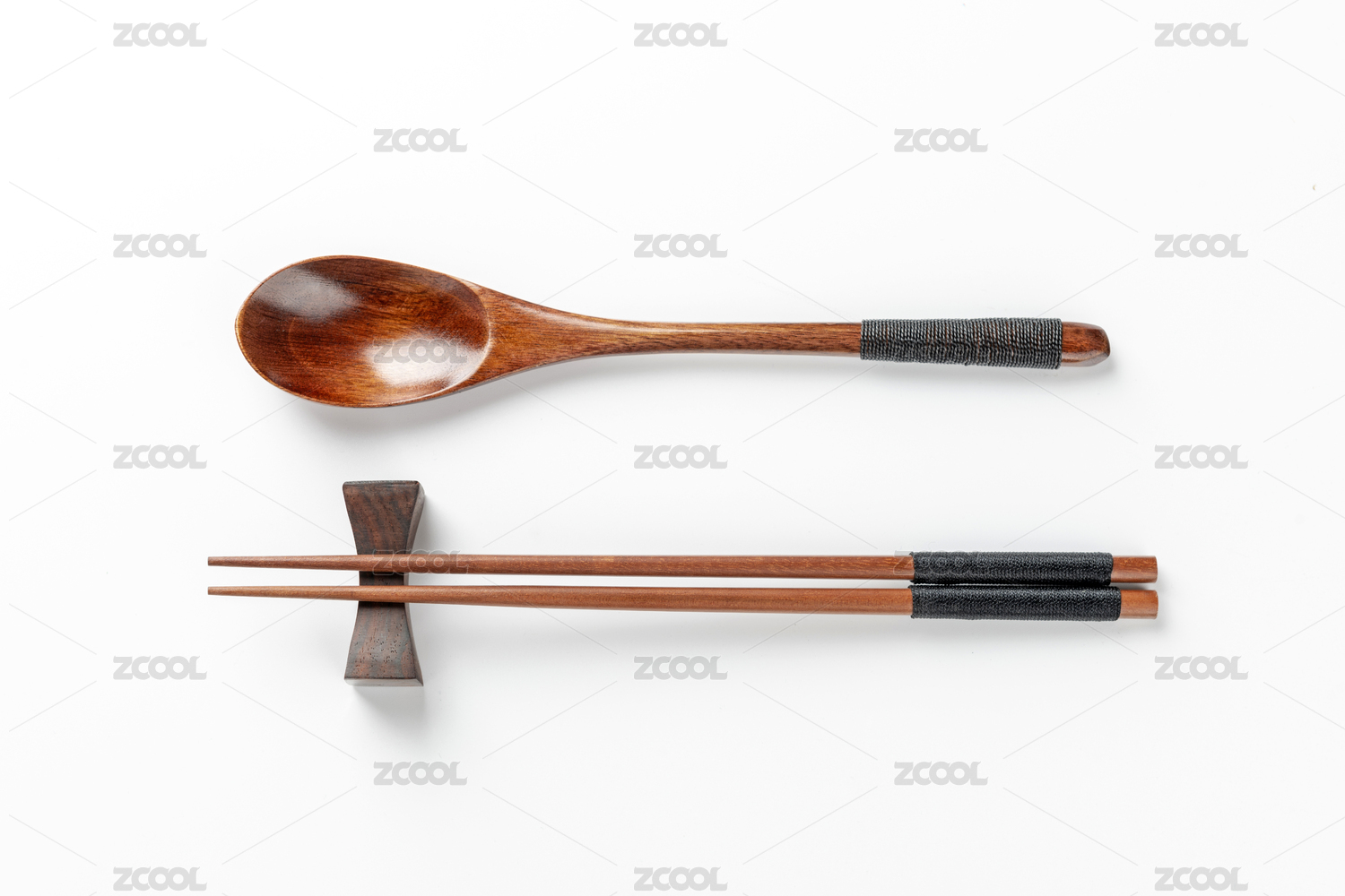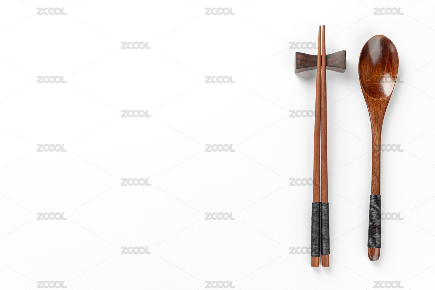 木制餐具木筷子木勺特寫(xiě)白色背景