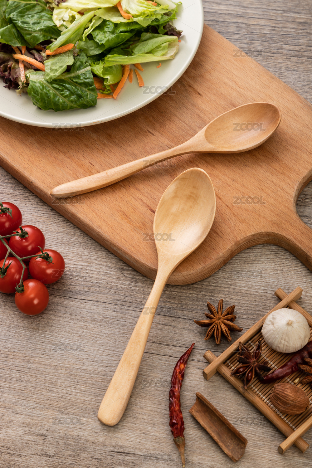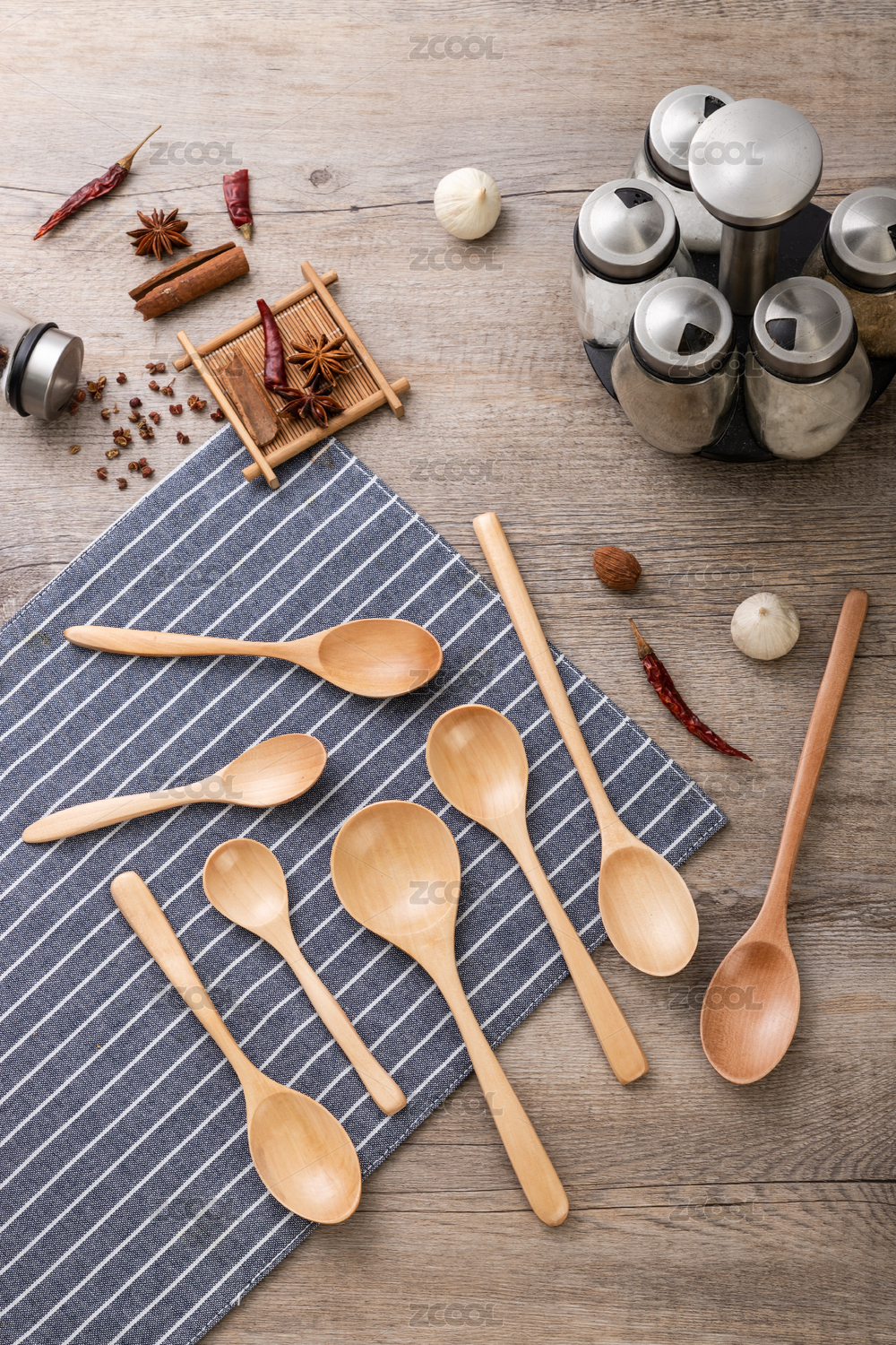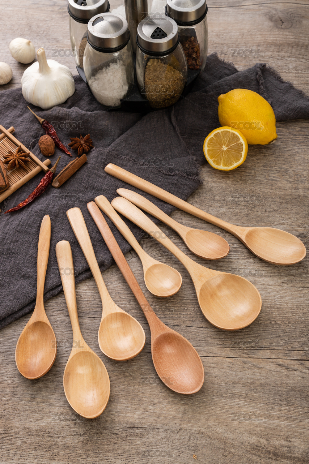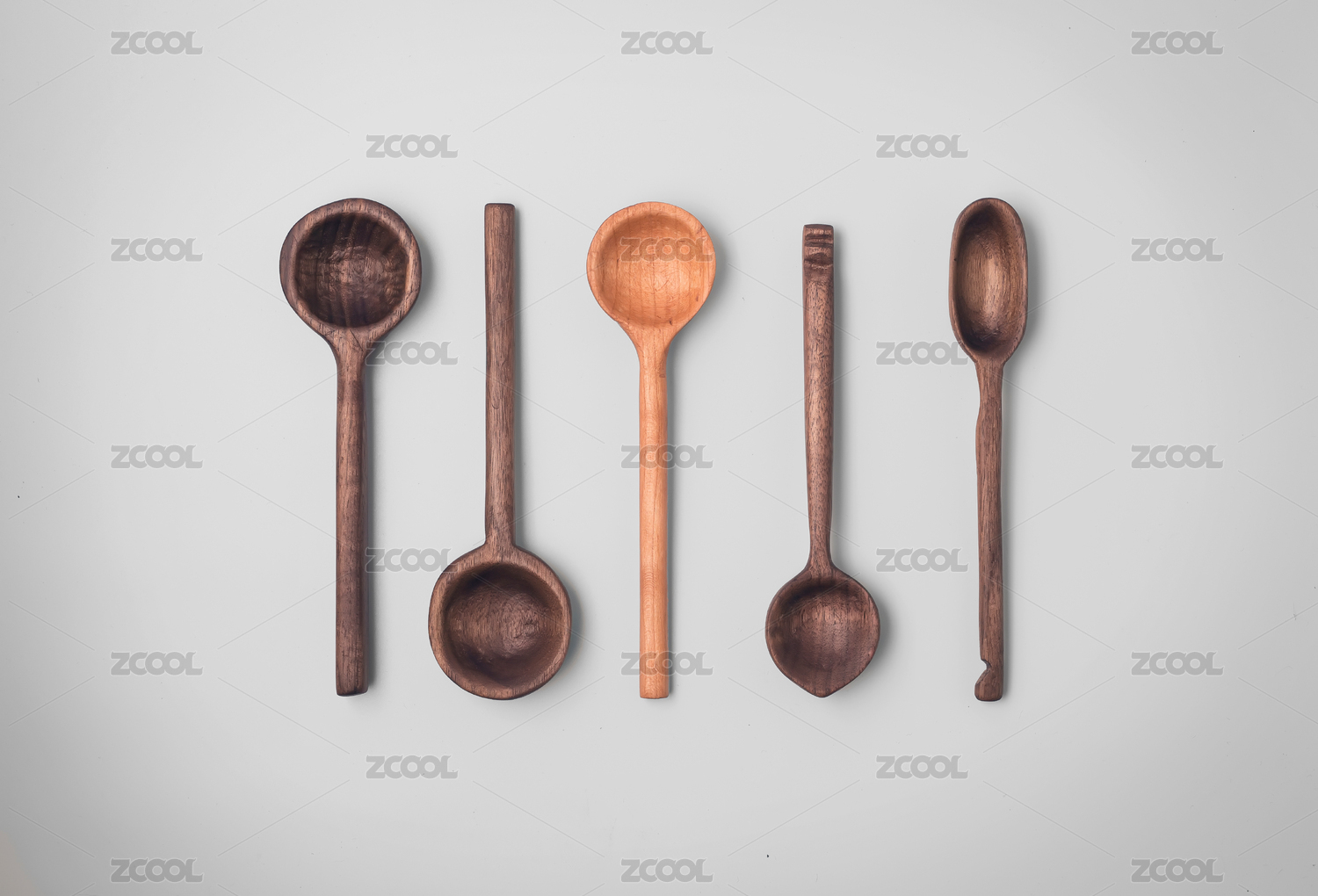 不同大小的餐具木勺