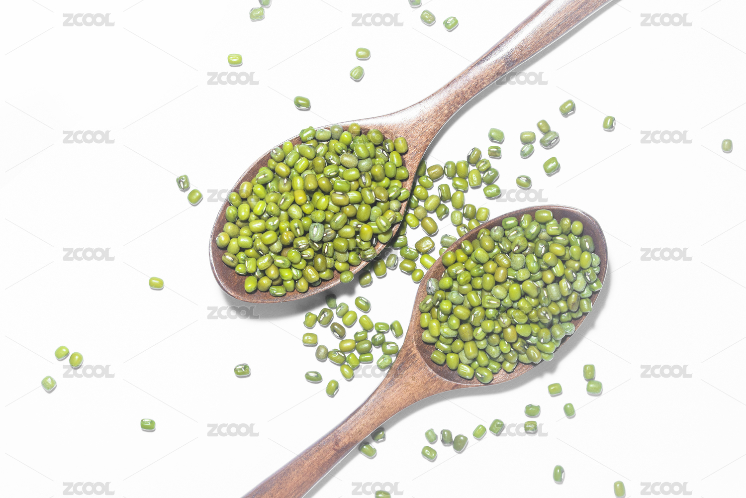 木勺勺綠豆放在白色背景上