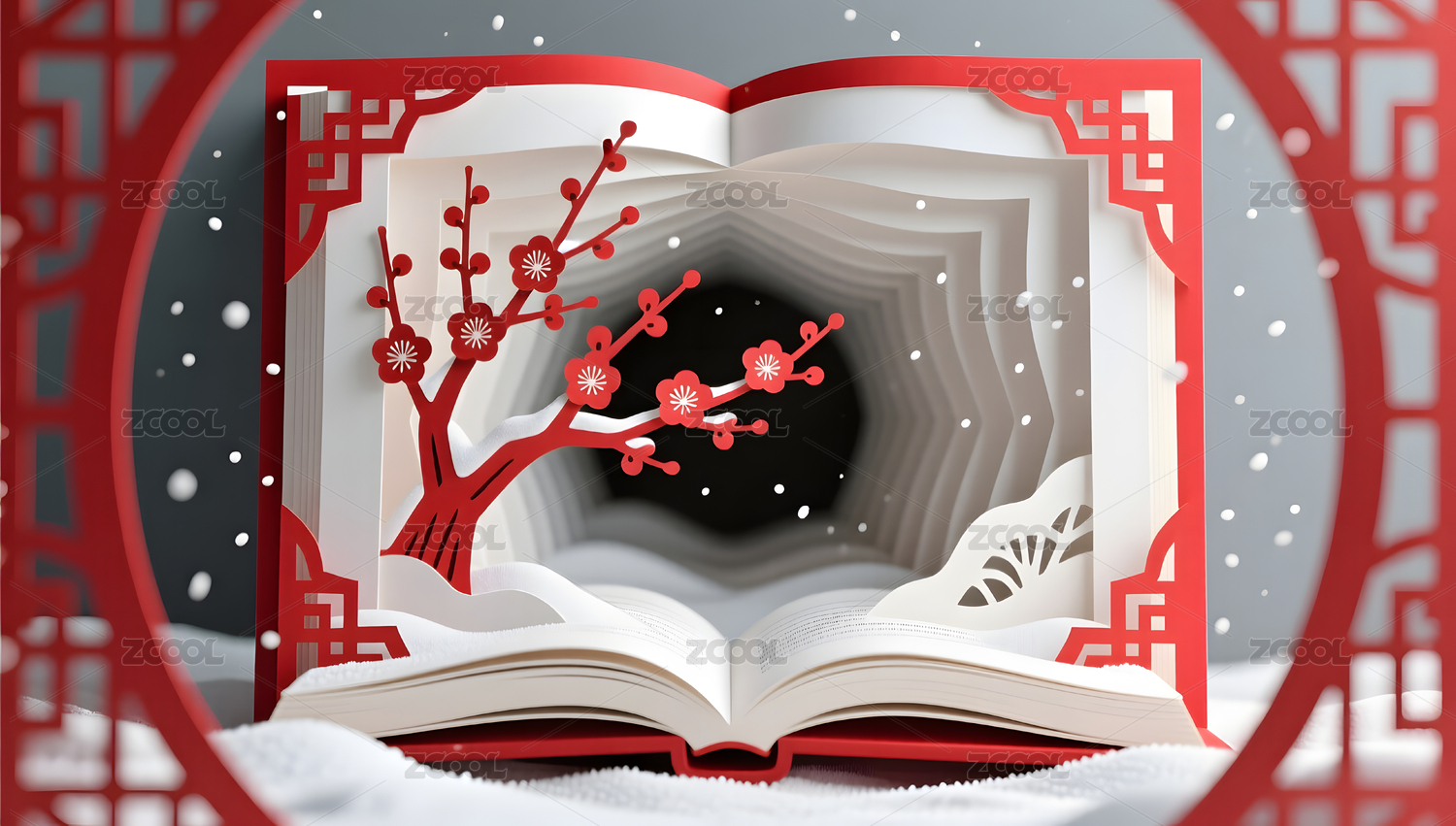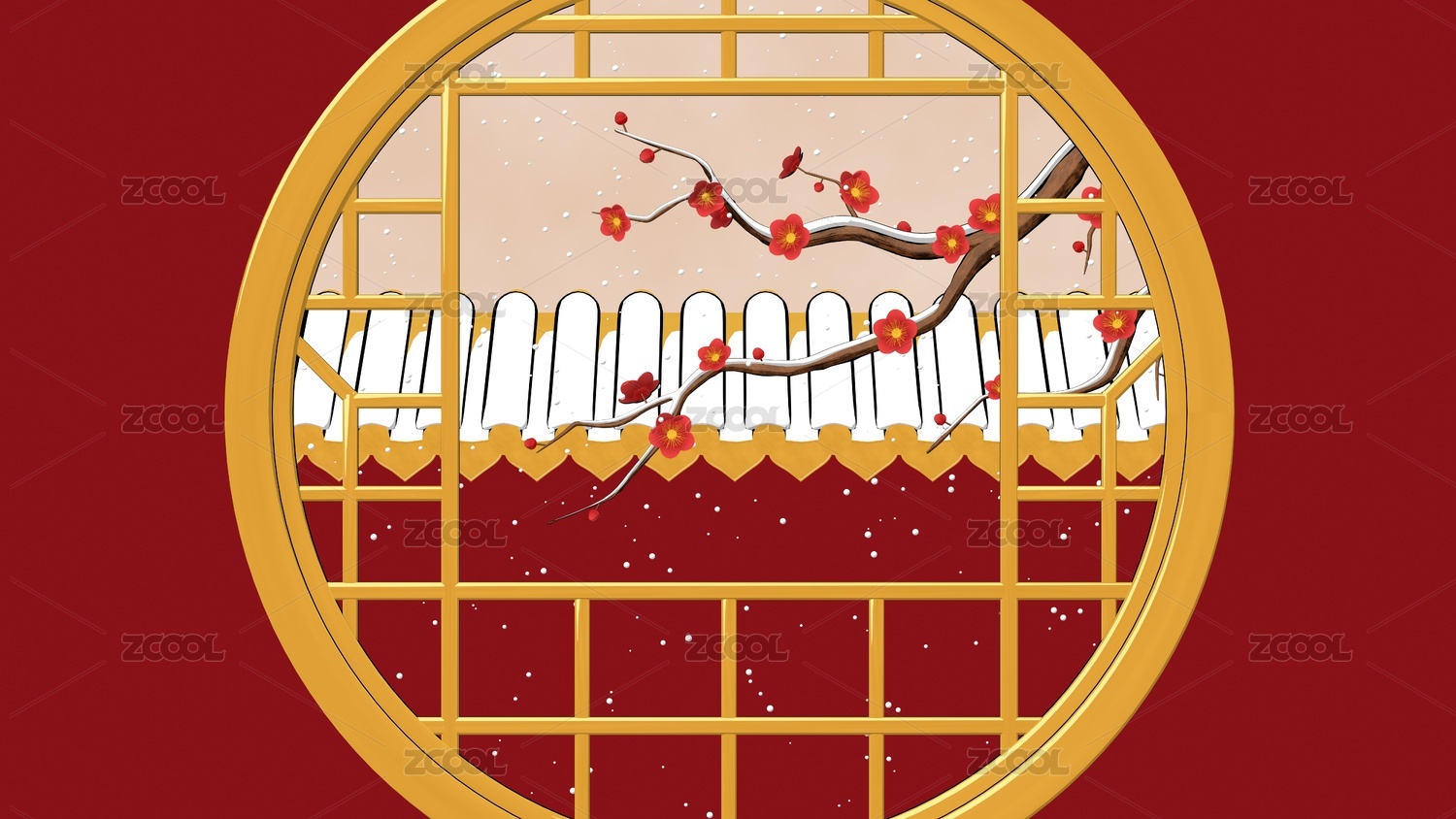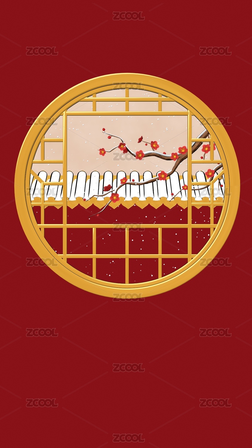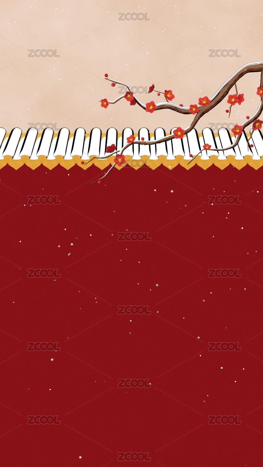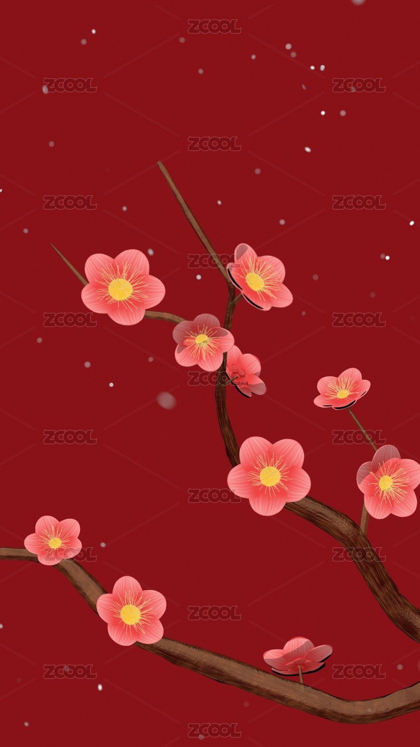 紅衣美人藍(lán)衣侍女踏雪尋梅古風(fēng)插畫
