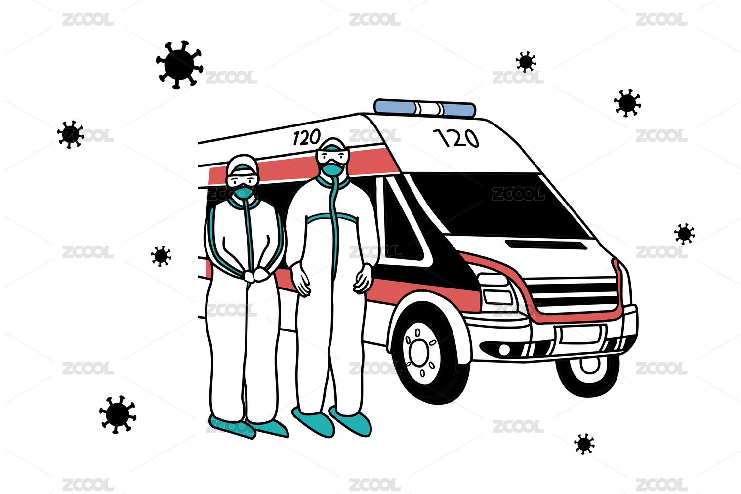 抗肺炎醫(yī)護(hù)人員120救護(hù)車急救插圖