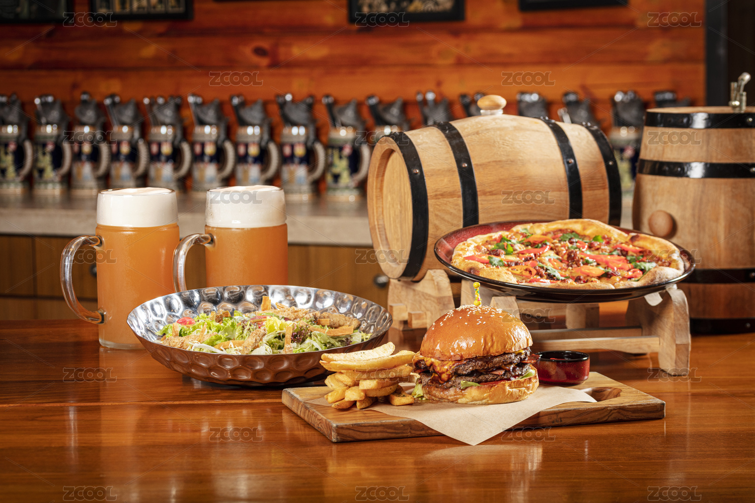 德式漢堡披薩沙拉啤酒組合