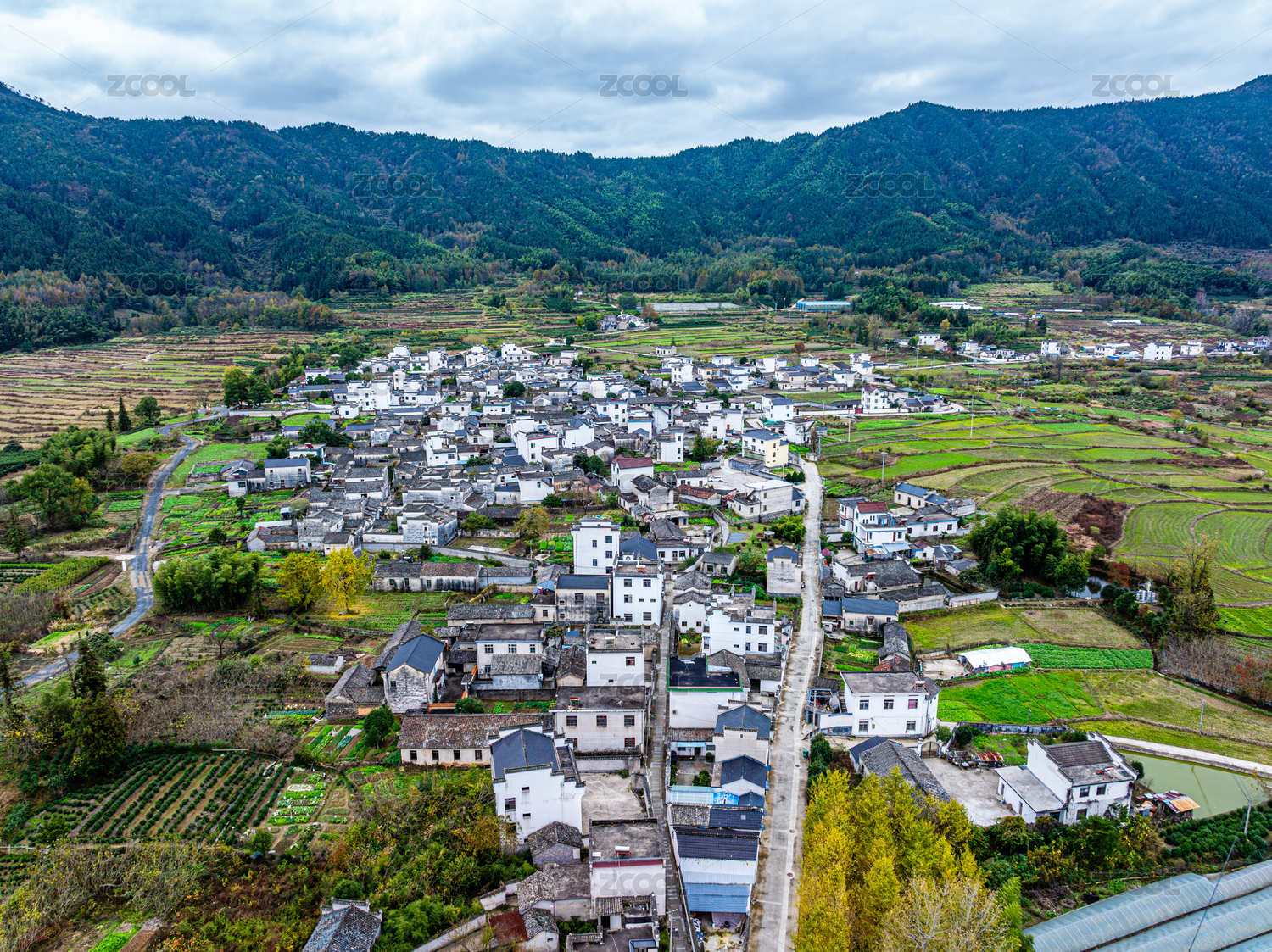 中國安徽黃山黟縣田間的鄉(xiāng)村航拍