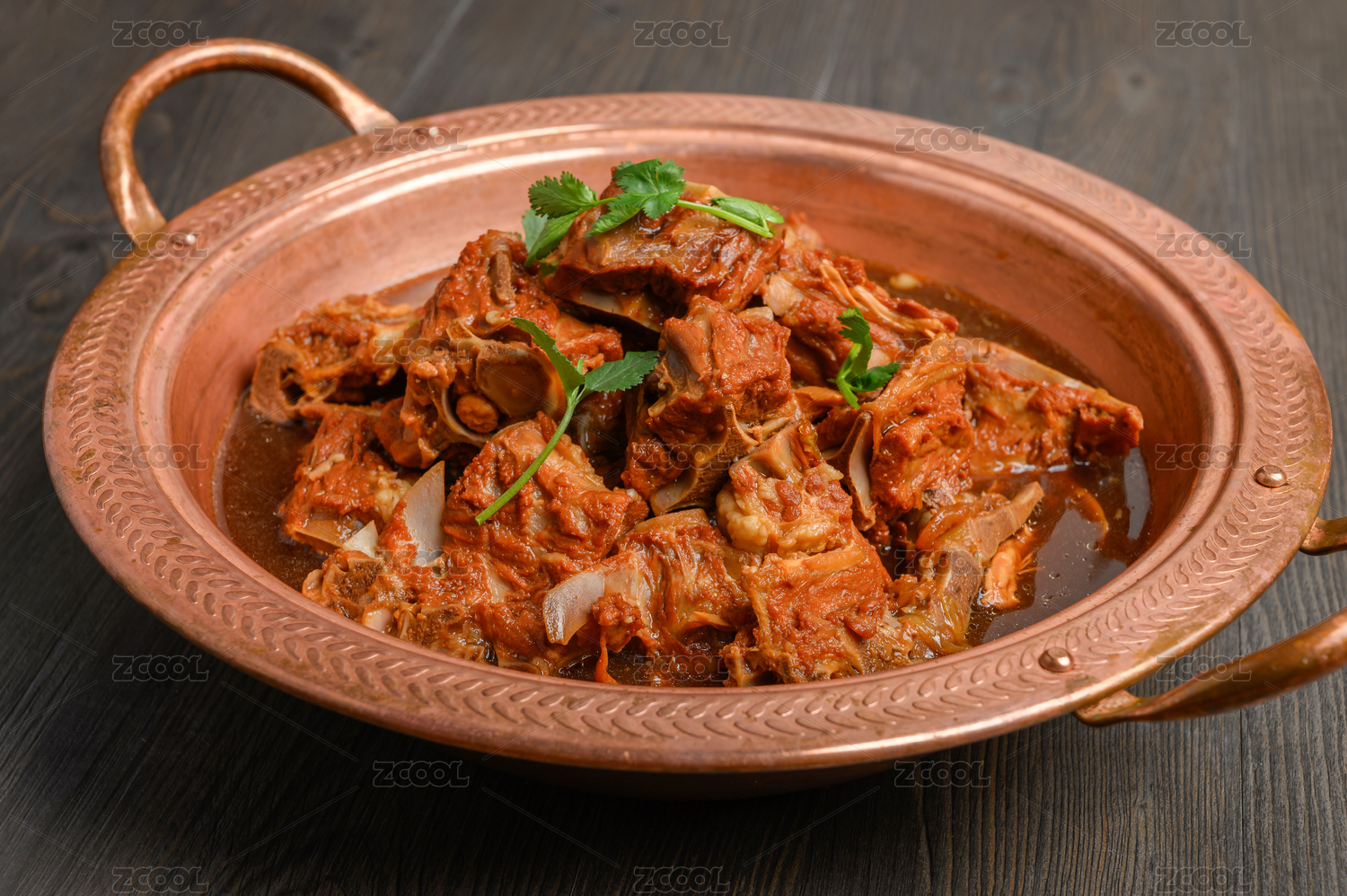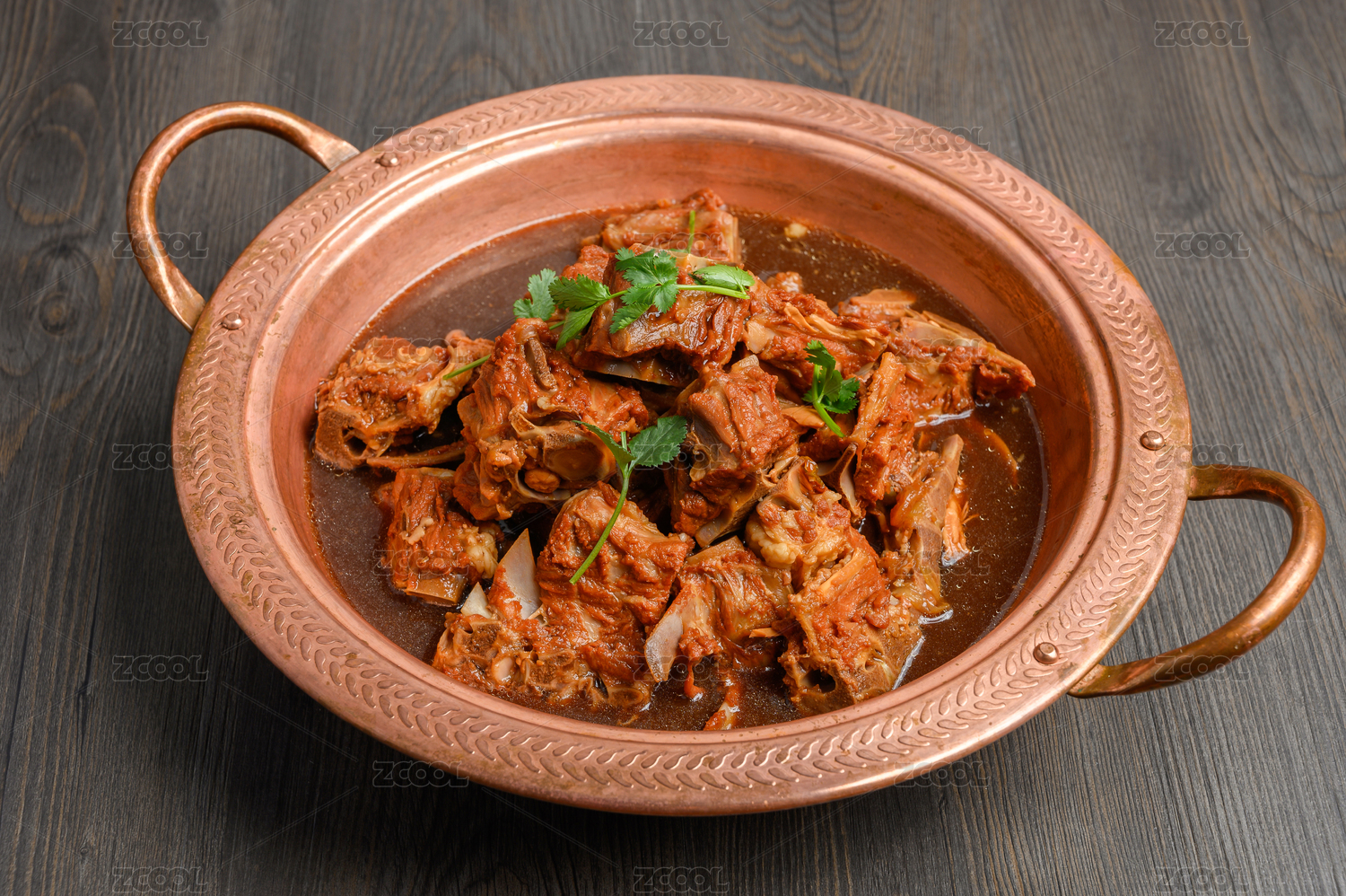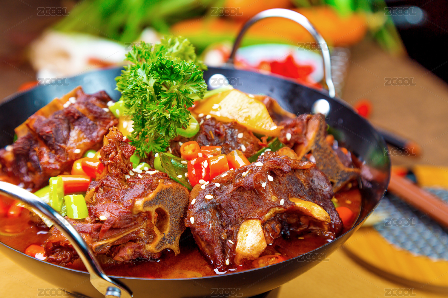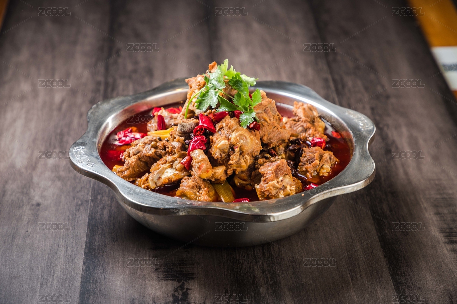 一鍋羊蝎子火鍋和筷子上夾著羊蝎子