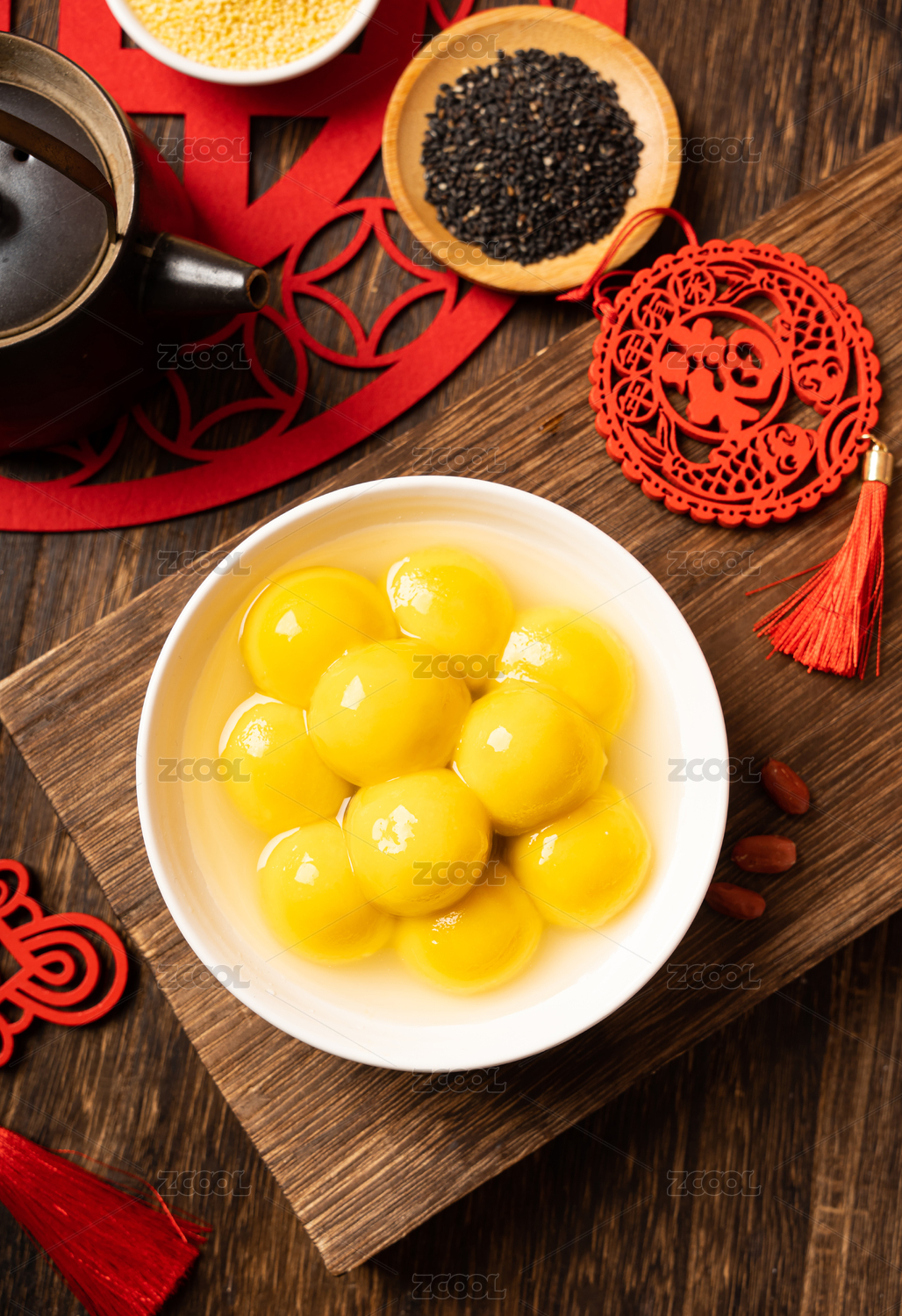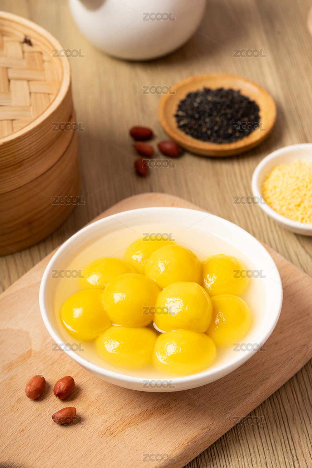木桌背景傳統(tǒng)美食大黃米湯圓