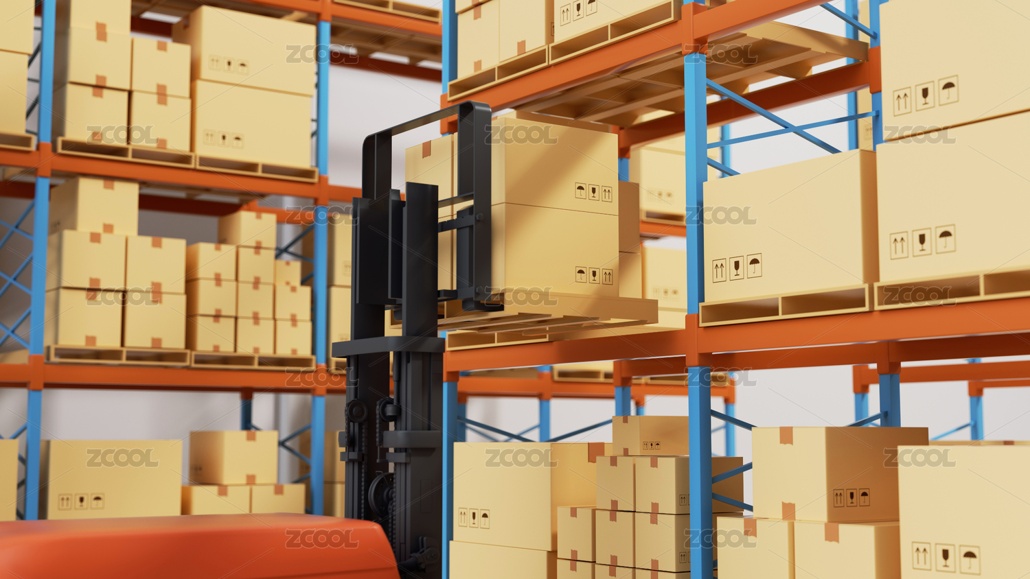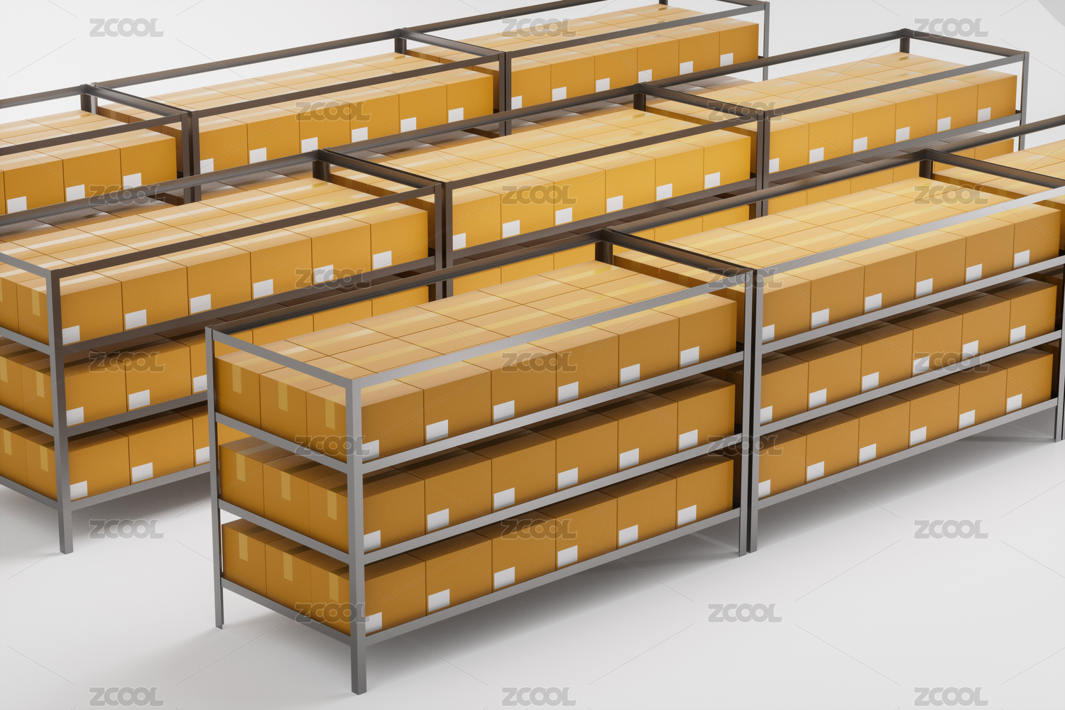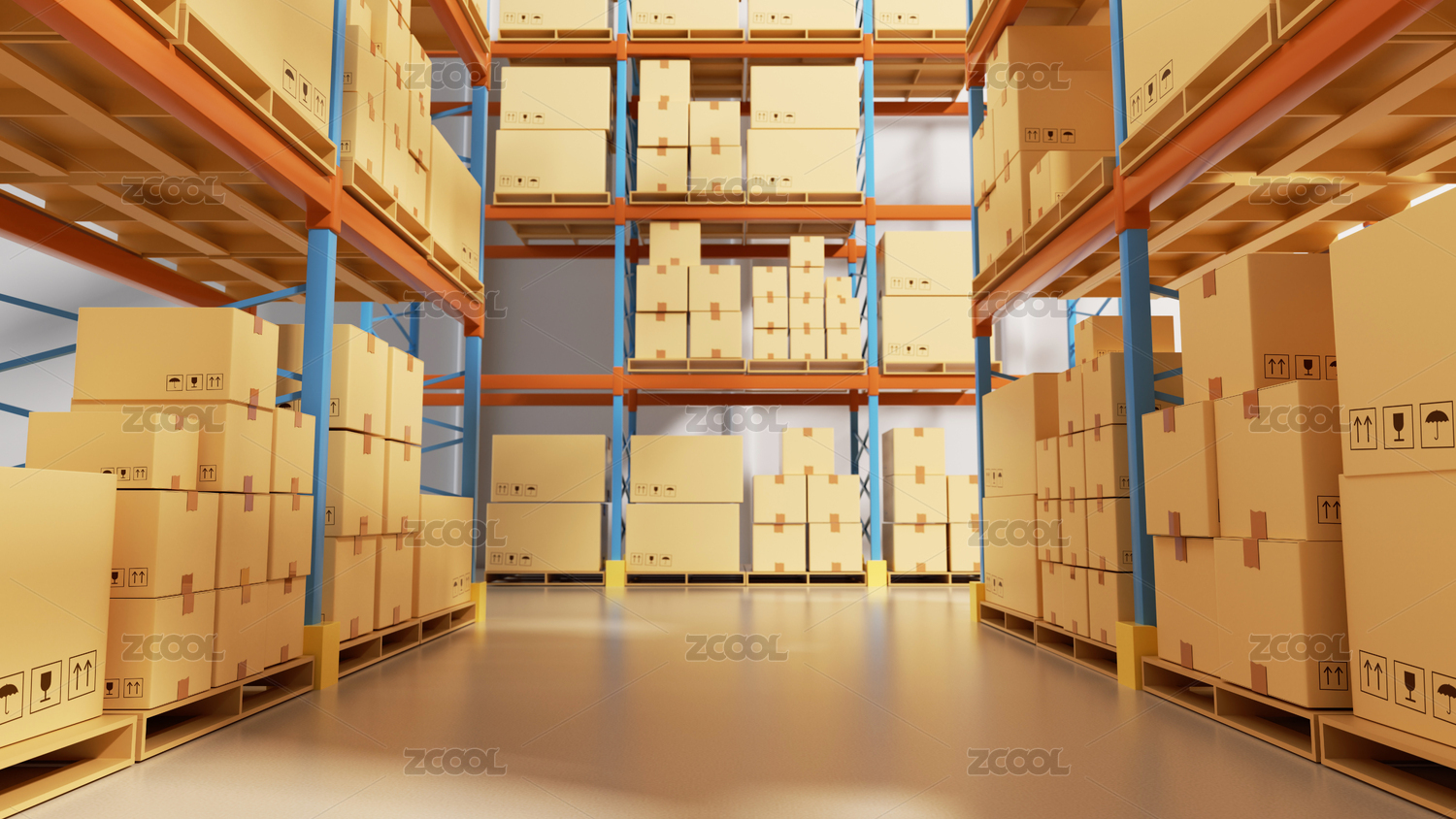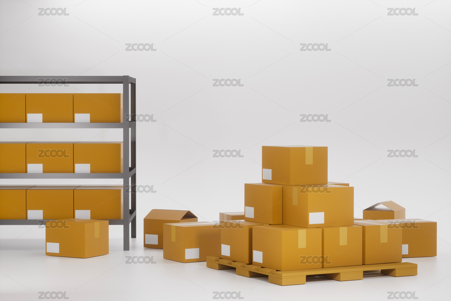 3D渲染的紙箱倉庫儲存運輸概念