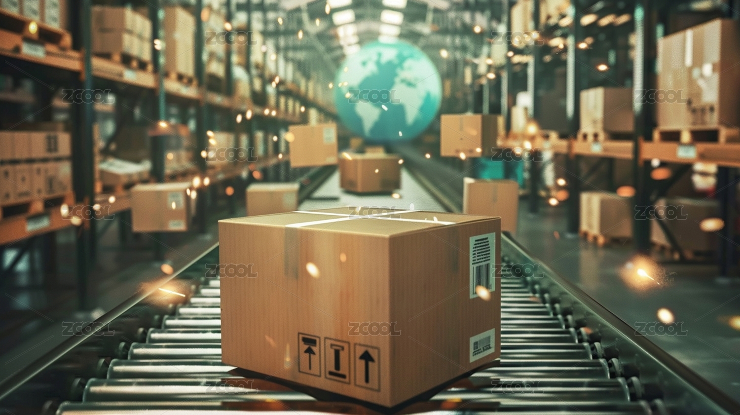 快遞包裹在傳輸帶上運輸,網上購物,物流自動化管理理念。