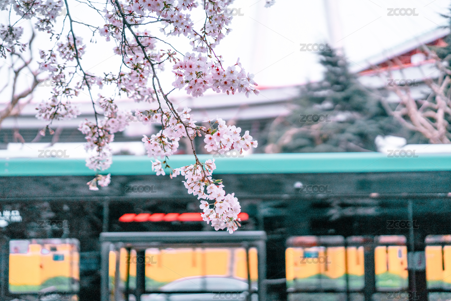 上海春天最美櫻花公交車站南浦大橋公交站