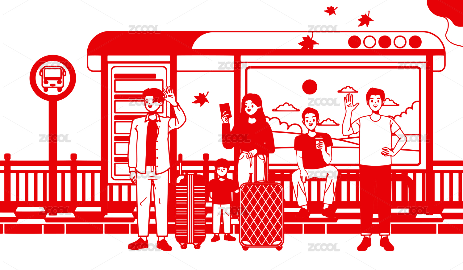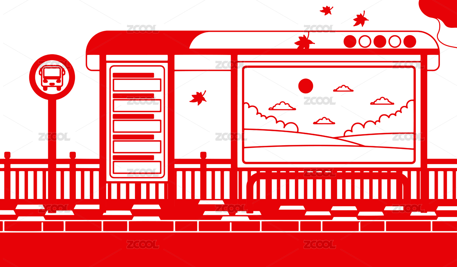 剪紙風(fēng)格公交車站