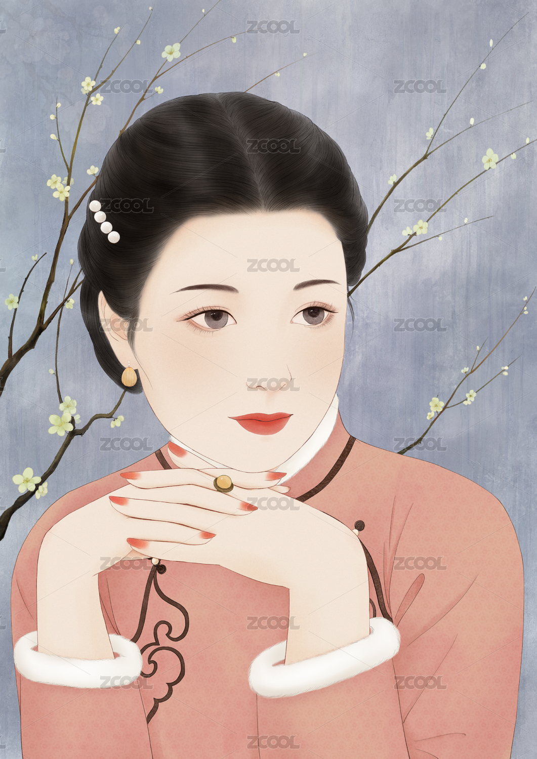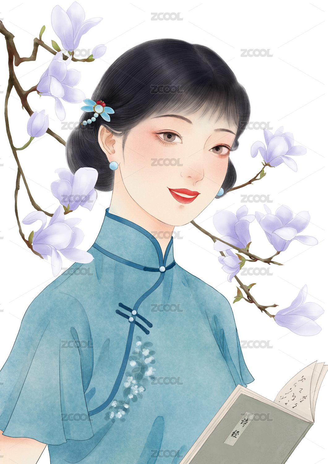 手繪民國才女插畫
