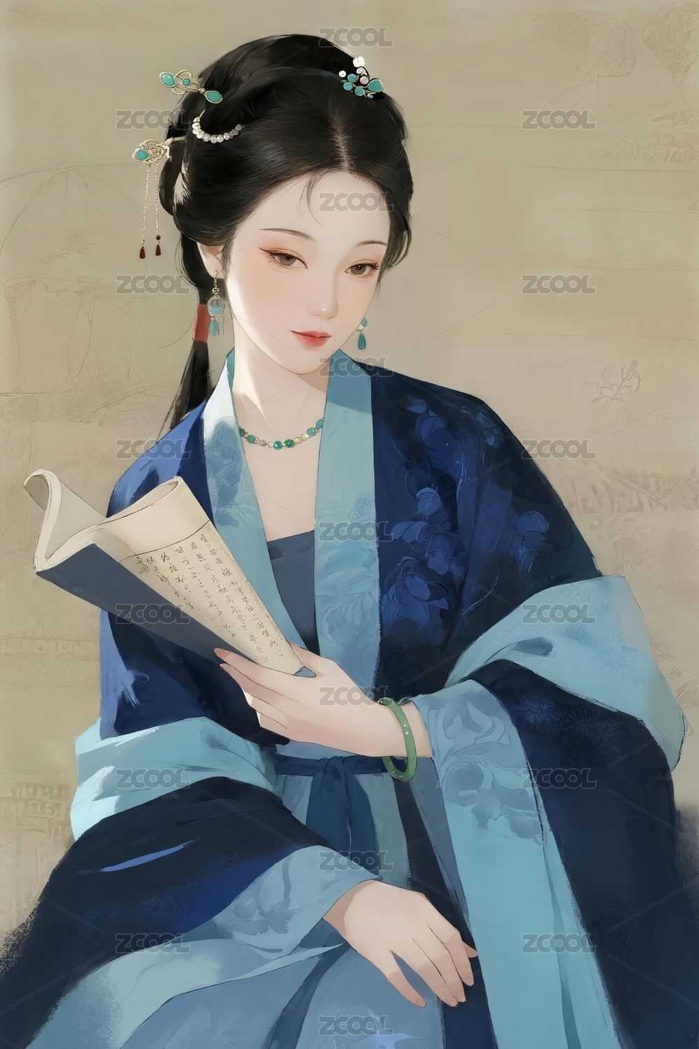 青衫書卷美人