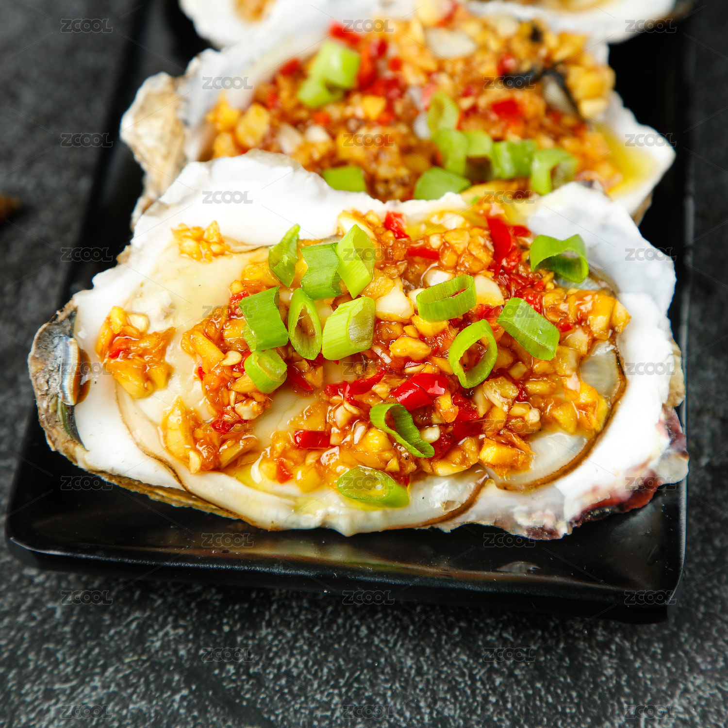 蒜蓉烤生蠔裝盤擺盤放桌子上