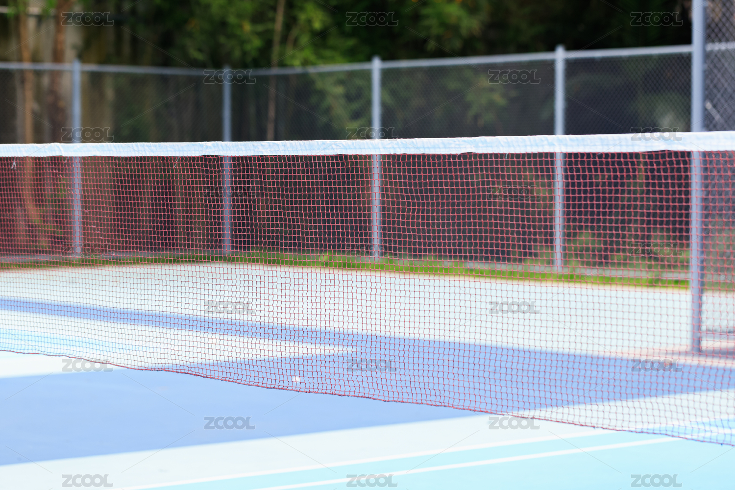 蔚藍(lán)天空下,干凈的白色欄桿和球網(wǎng)