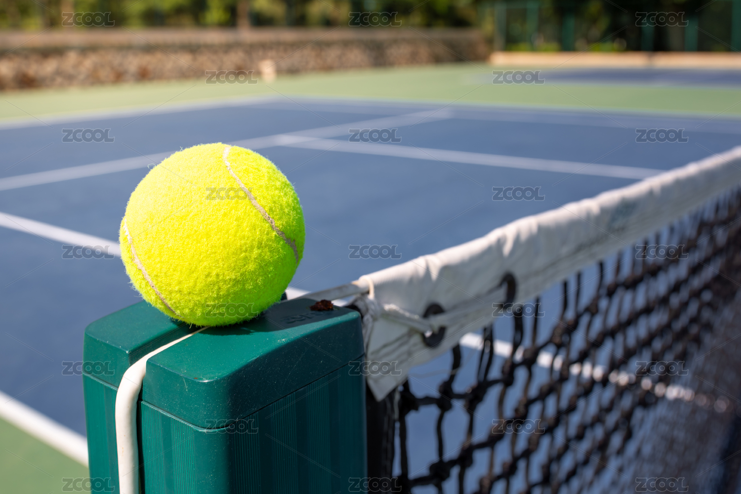 網(wǎng)球靜置于網(wǎng)球場(chǎng)球網(wǎng)支柱上