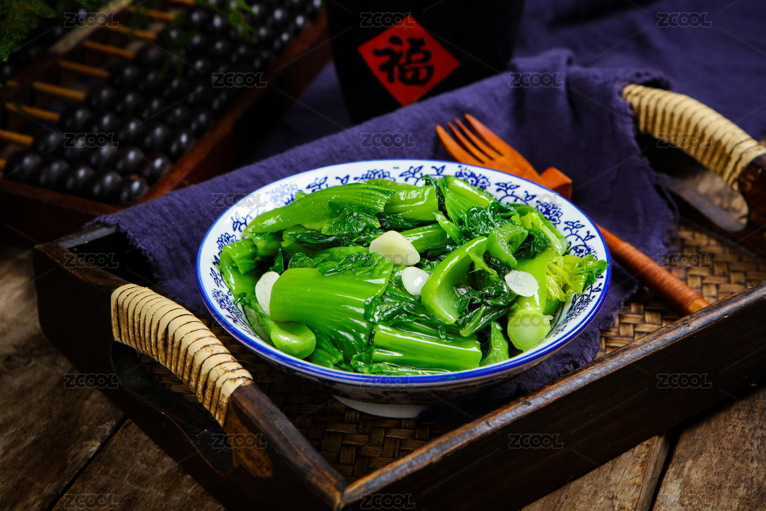 木盤子上的水東芥菜