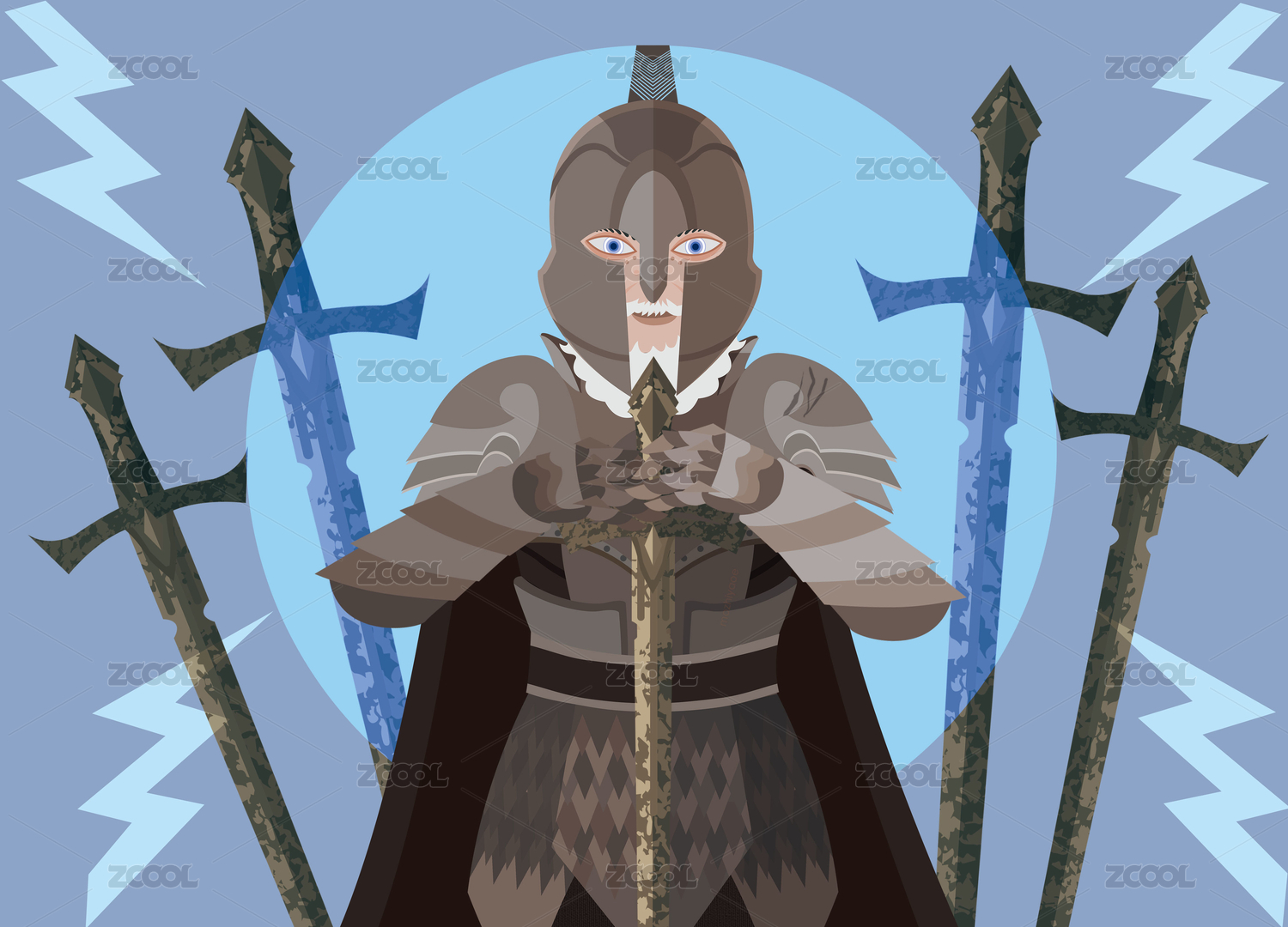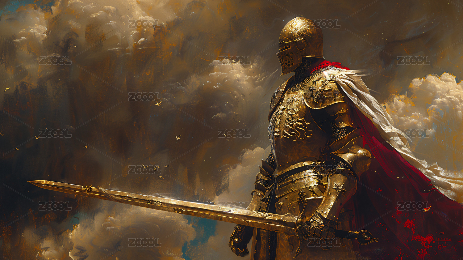 油畫風(fēng)手持大劍的歐洲中世紀騎士