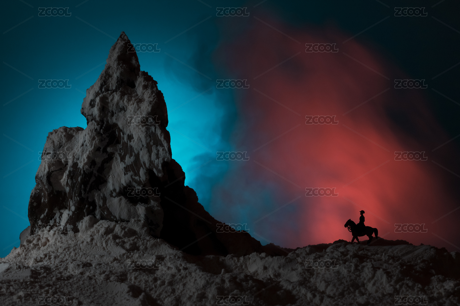 魔幻剪影山脈騎馬的騎士山地