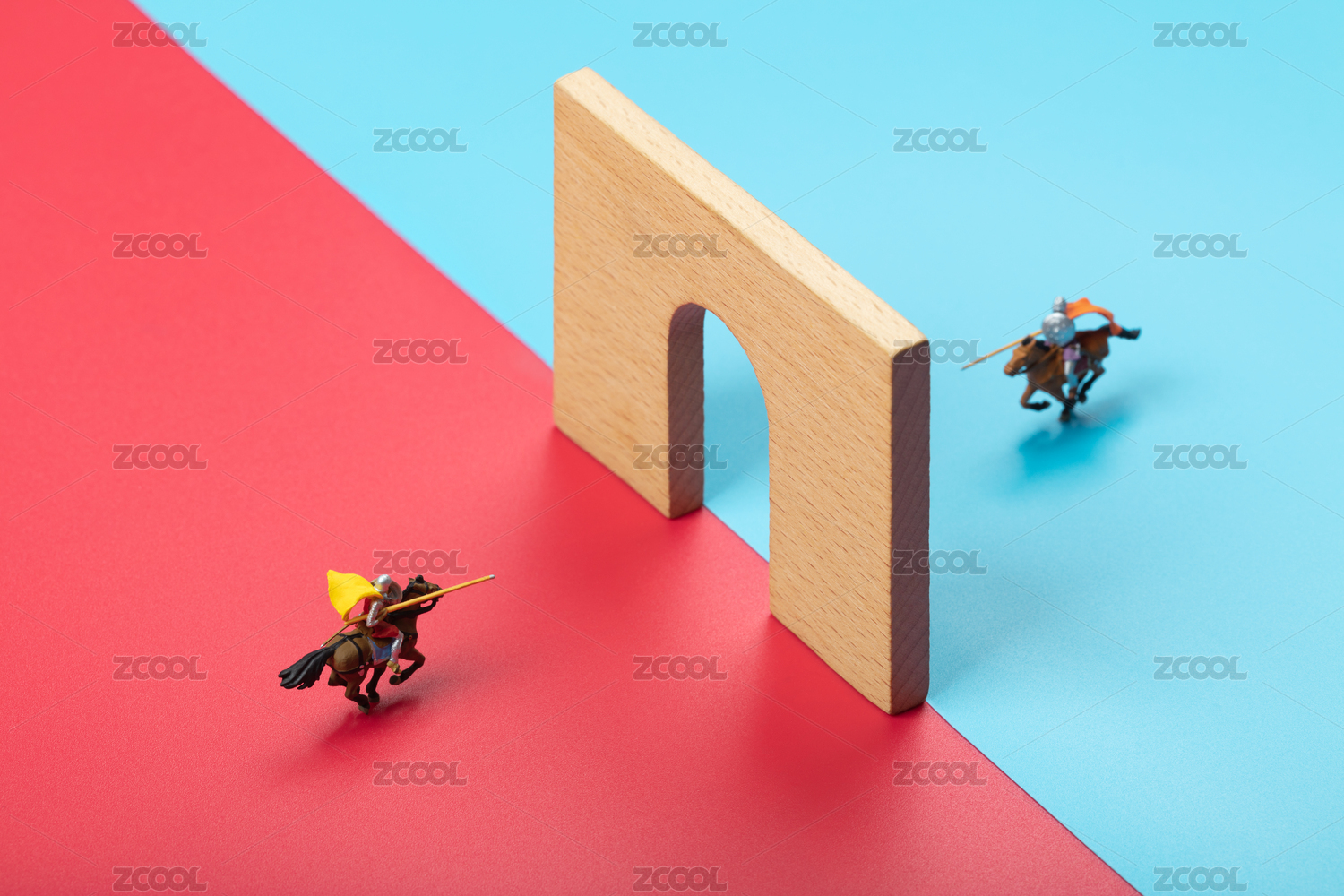 微縮創(chuàng)意金融商業(yè)大門紅藍對抗的騎士