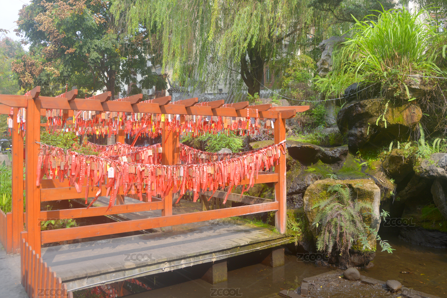 成都三道堰古鎮(zhèn)惠里商業(yè)街廊架祈福紅絲帶