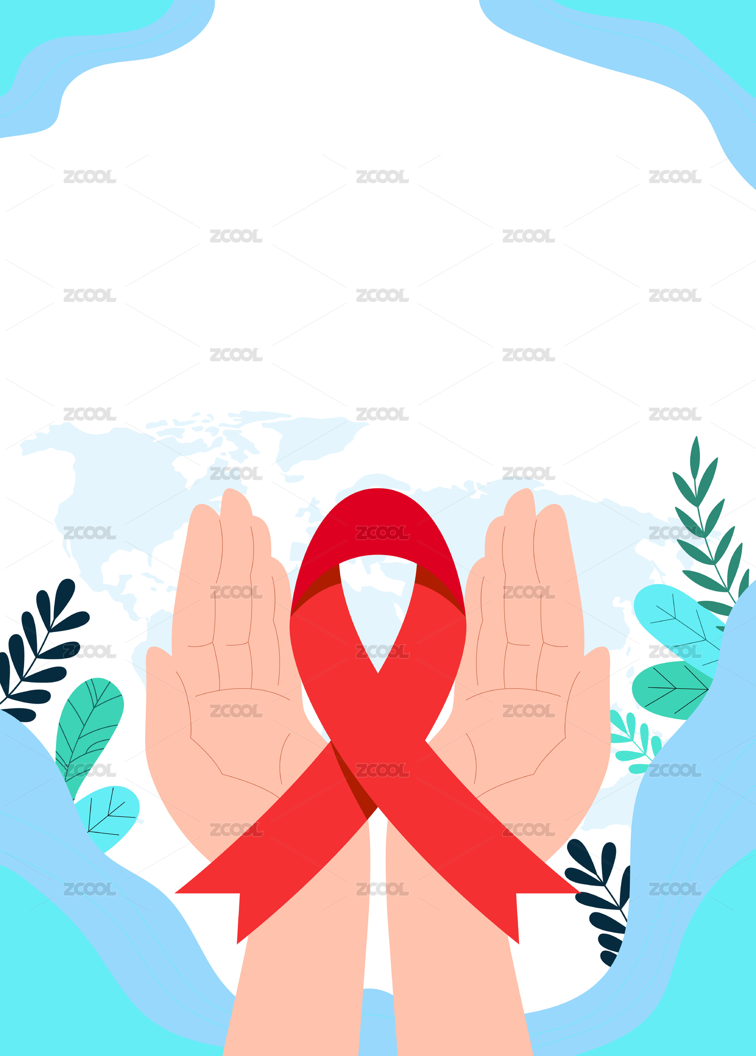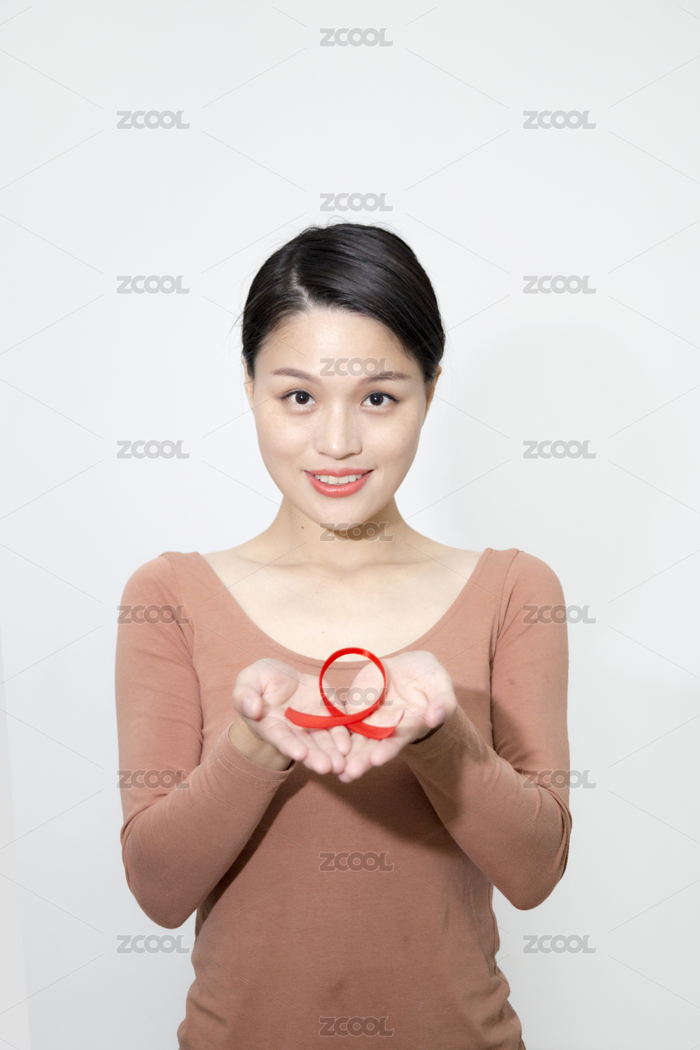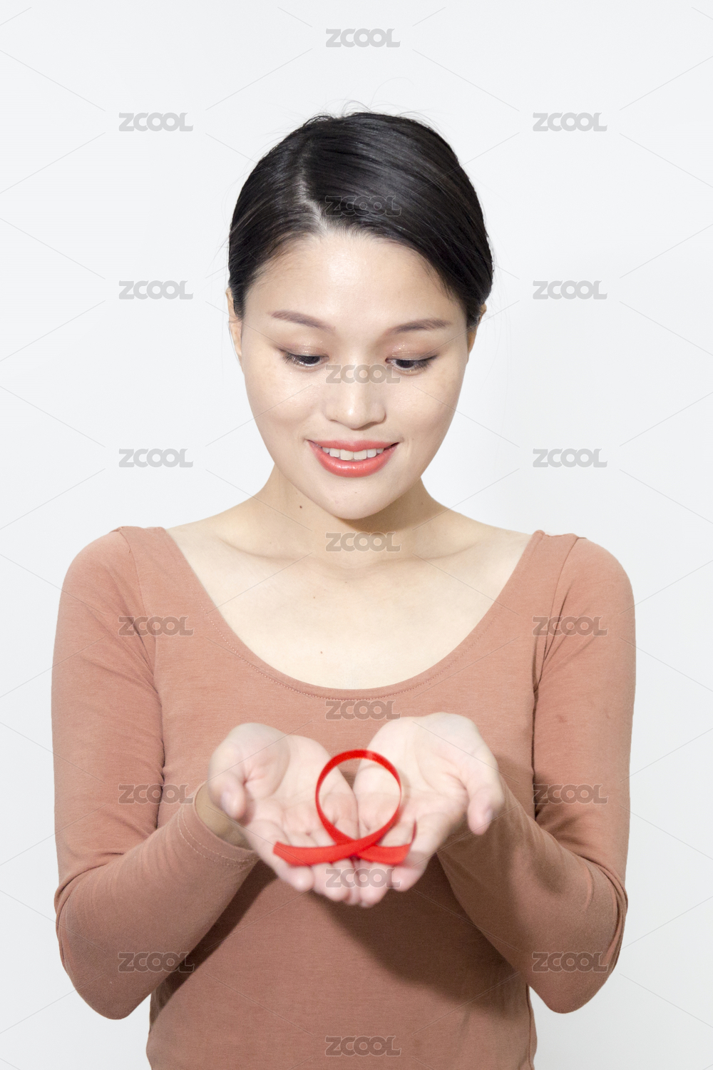 雙手托舉紅絲帶關愛艾滋
