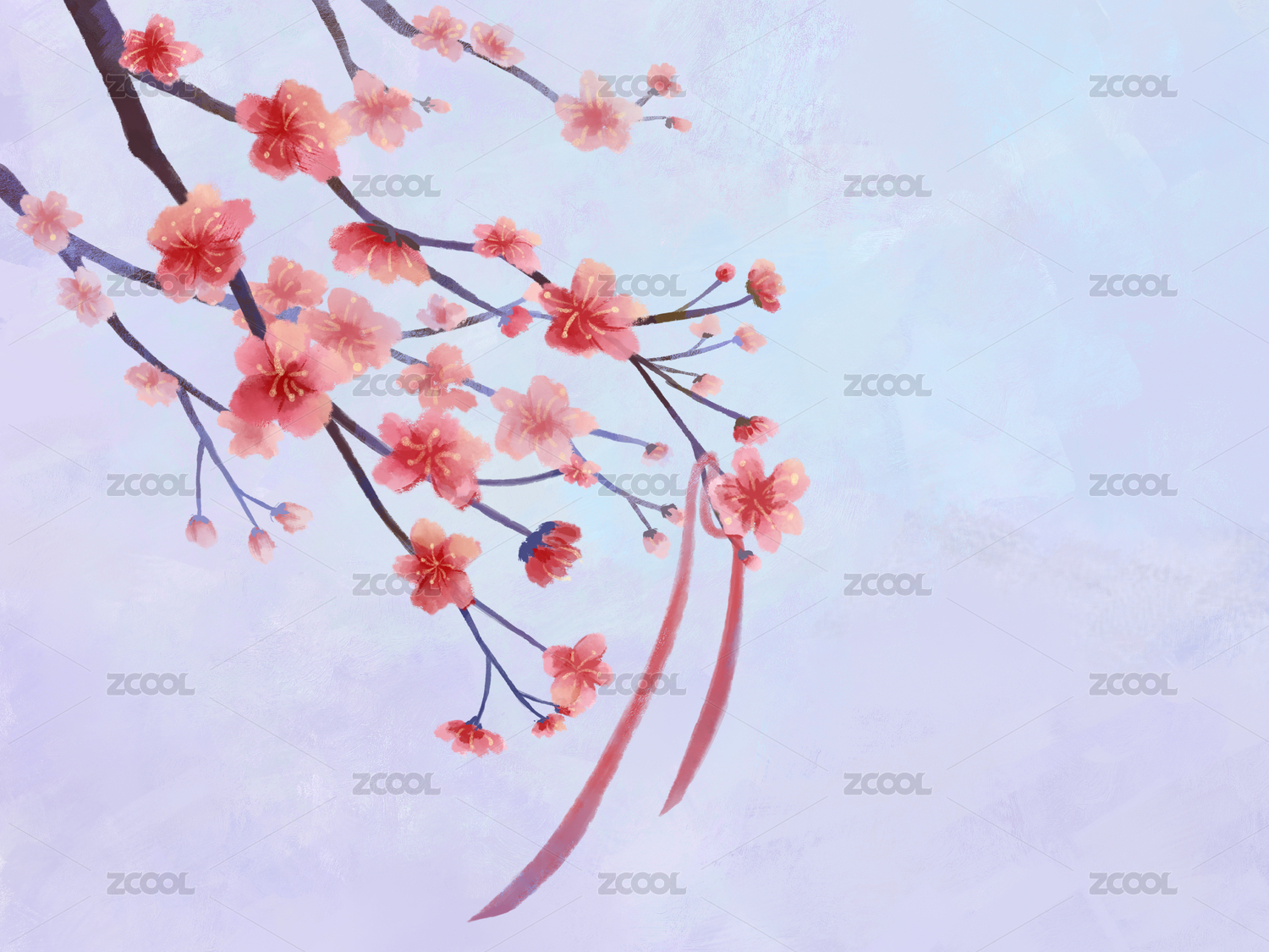 冬天梅花紅絲帶