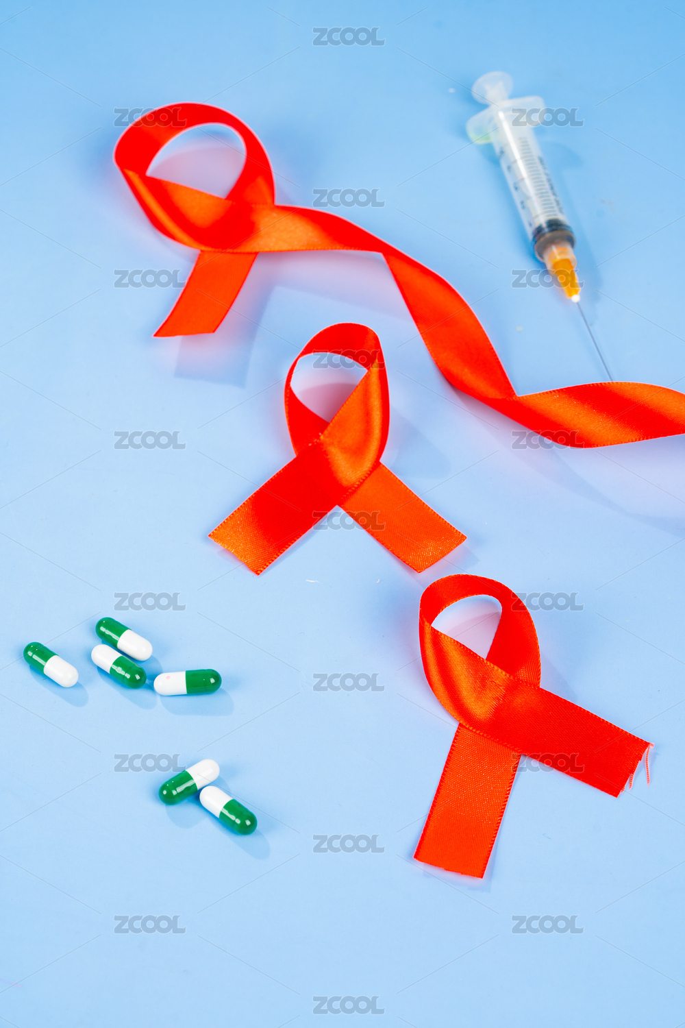 紅絲帶注射器關心艾滋病