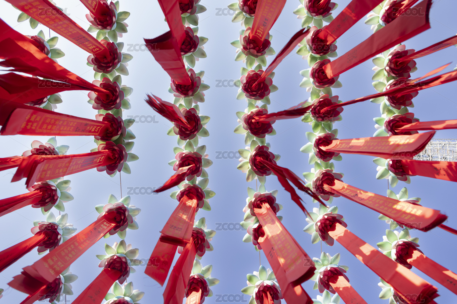 新年祝福祈福紅絲帶蓮花燈與紅絲綢