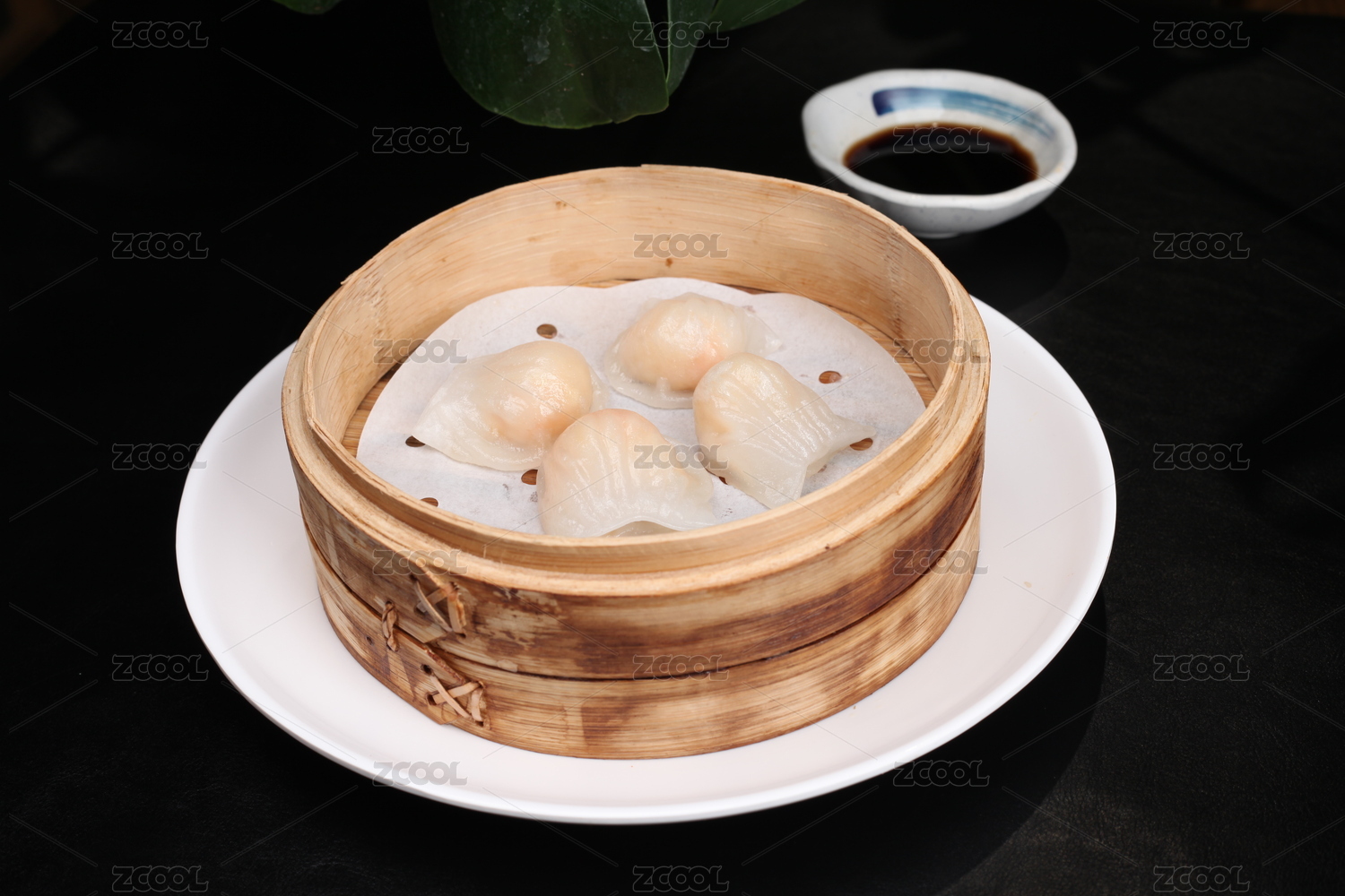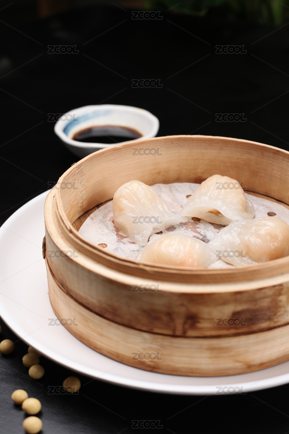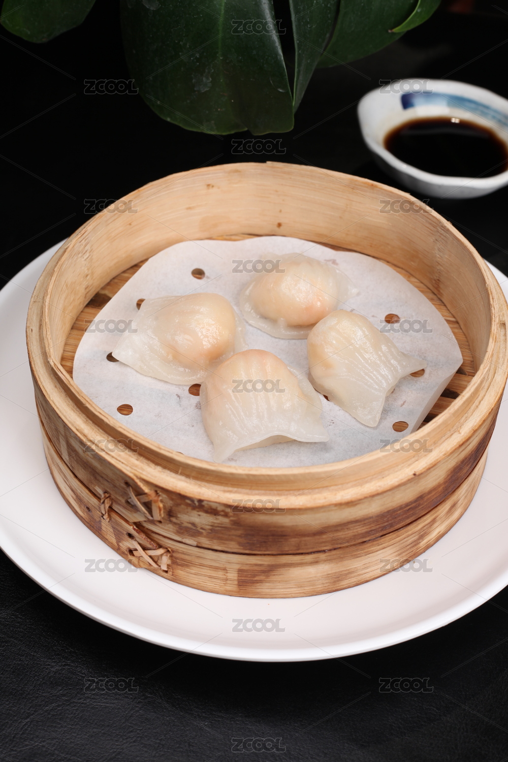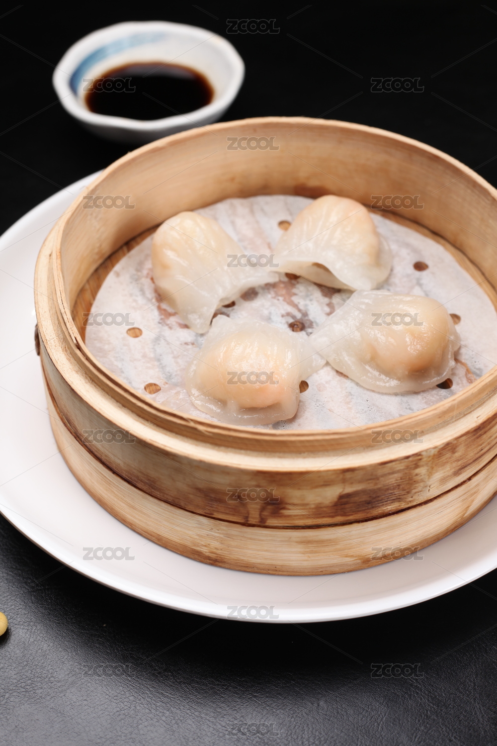 放在點(diǎn)心盤子上的廣東美食蝦餃皇