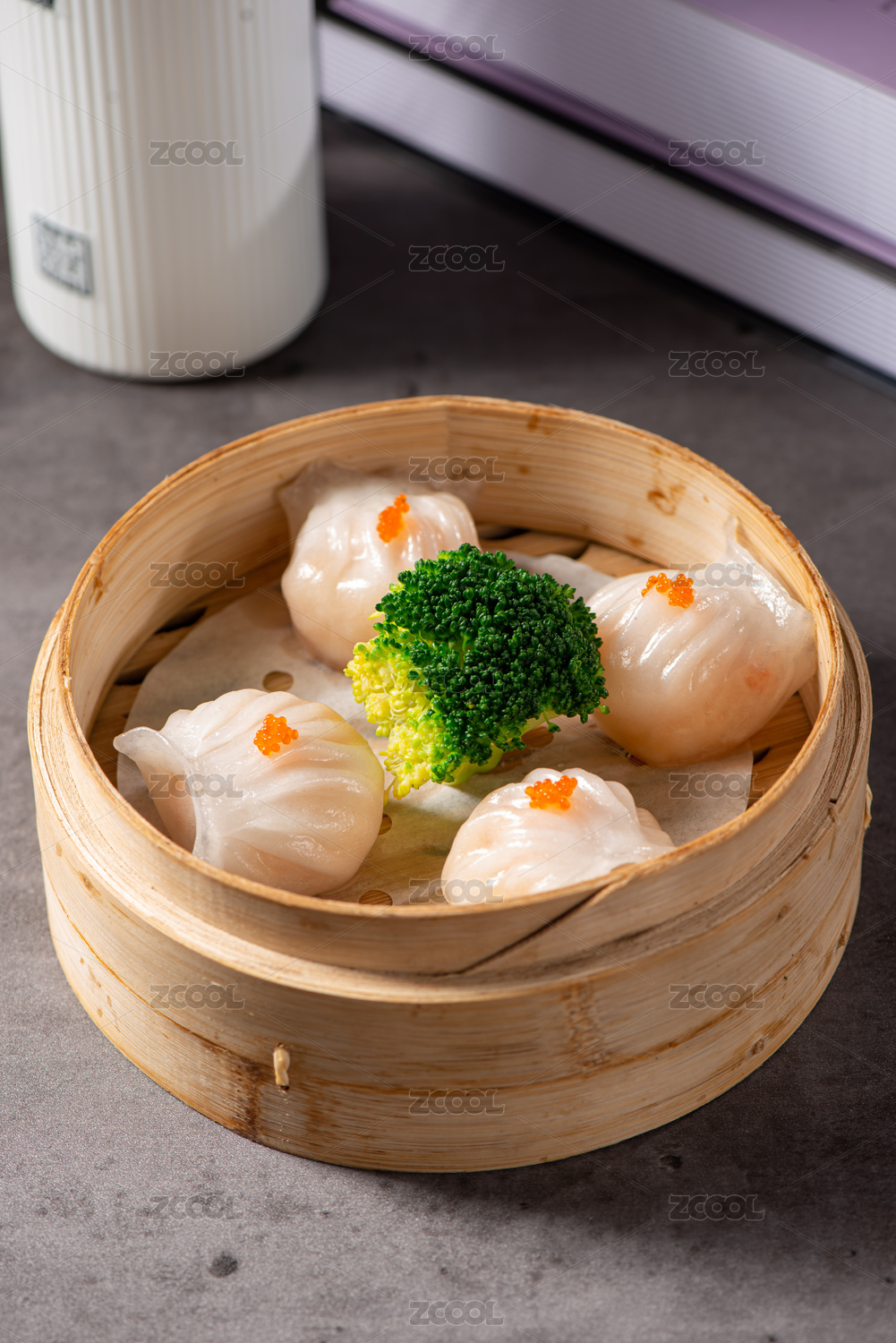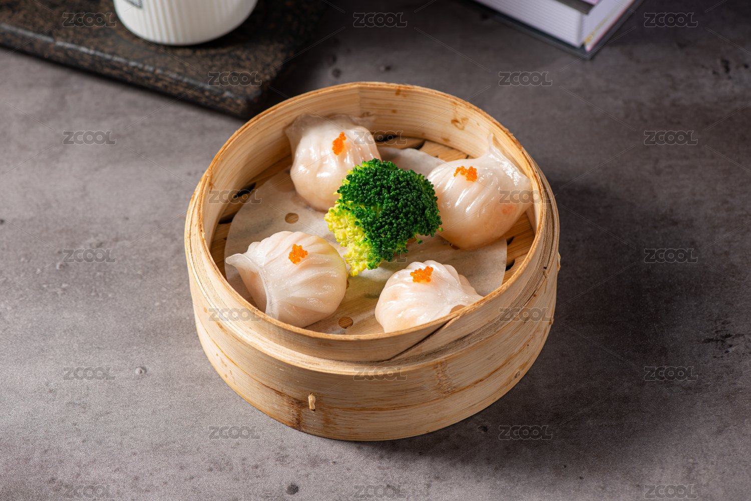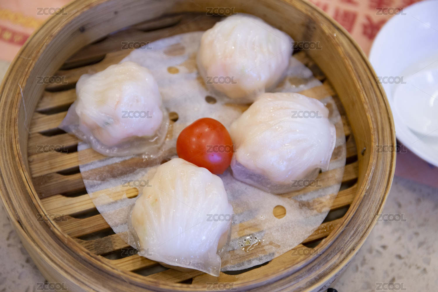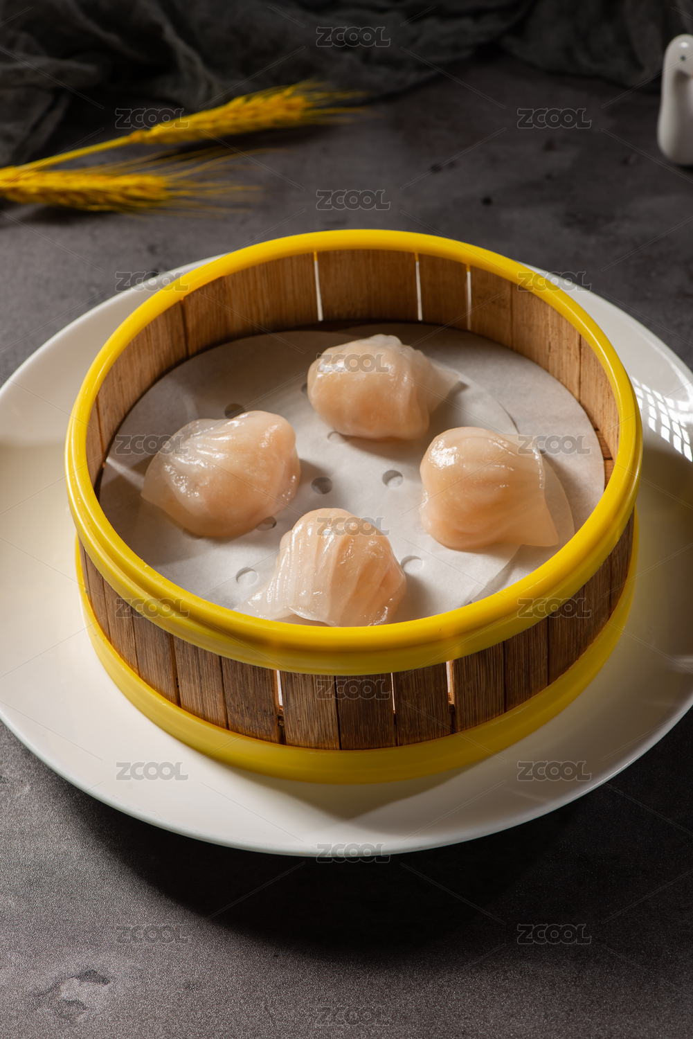 放在點(diǎn)心盤子上的廣東美食蝦餃皇