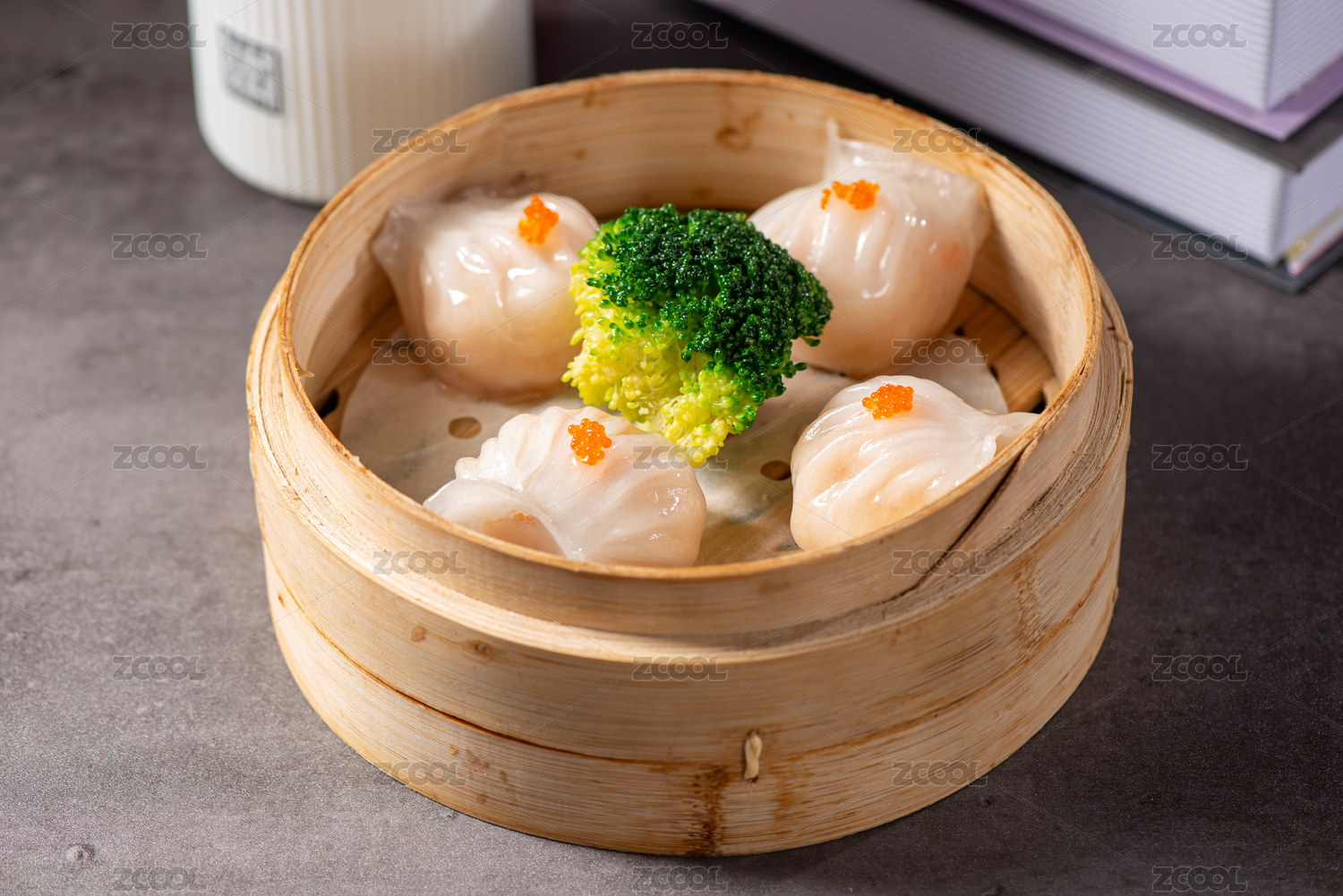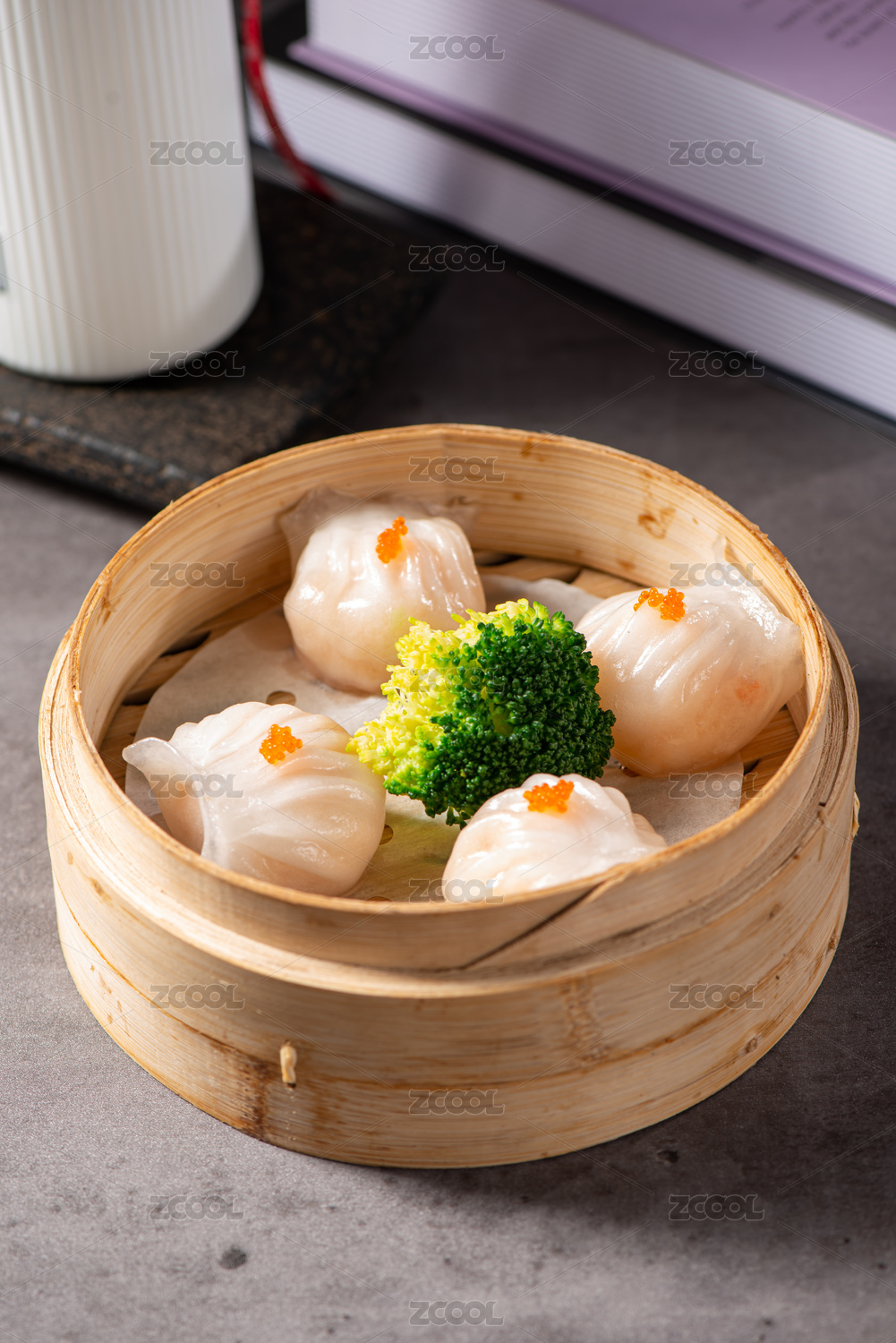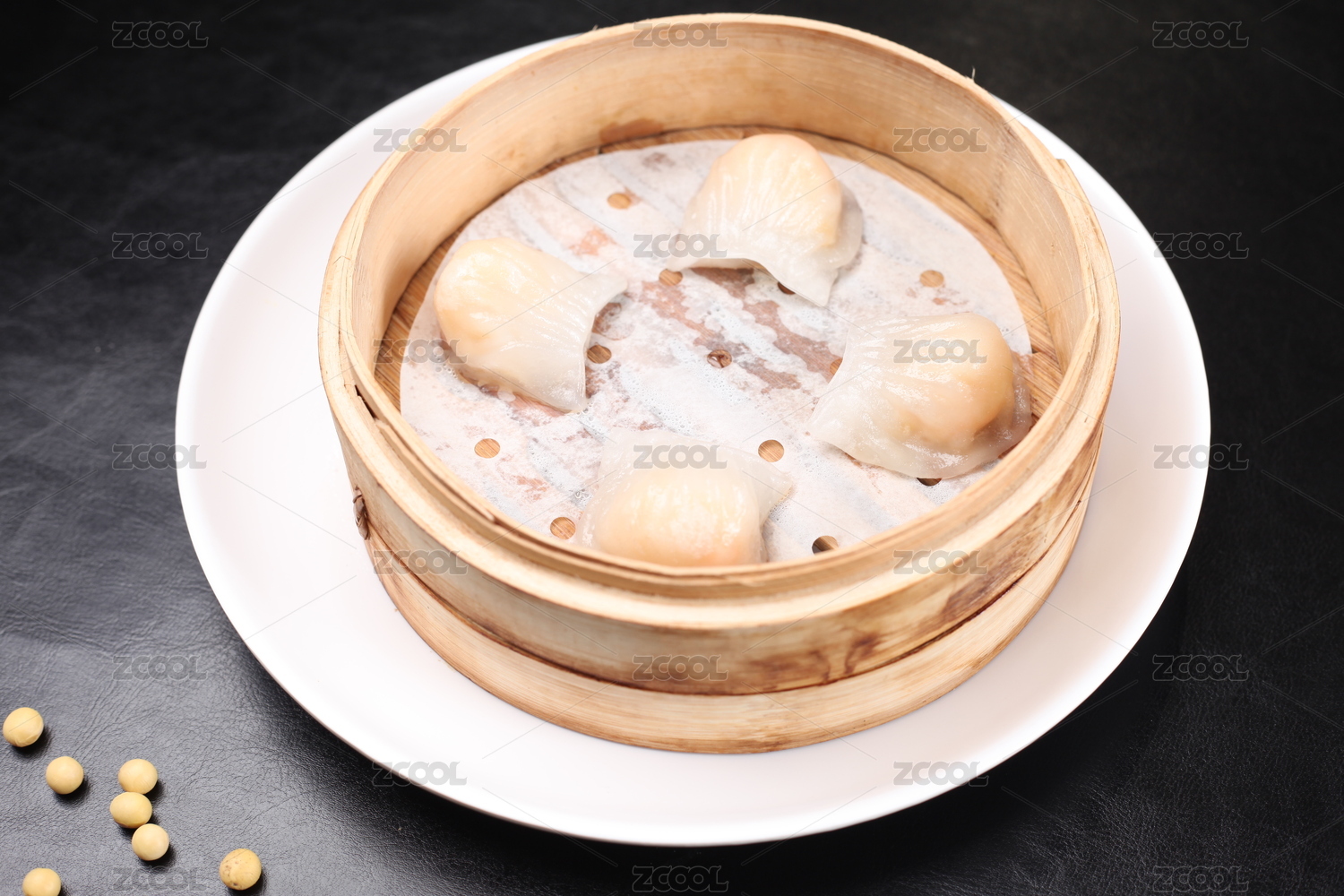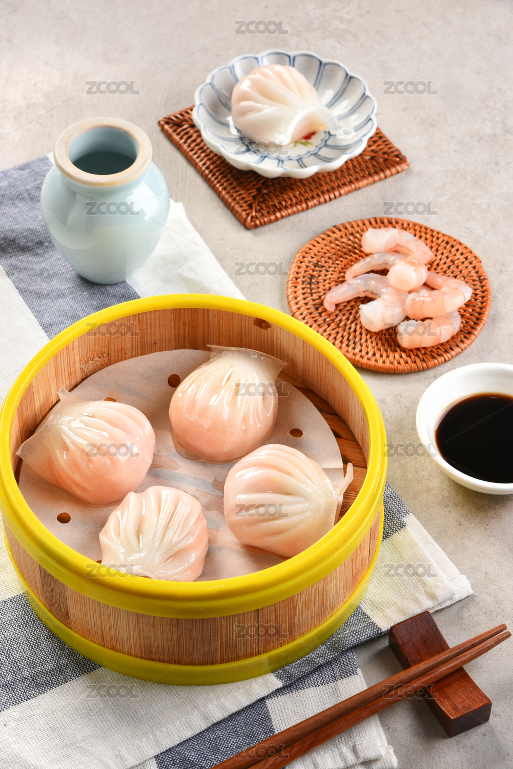 放在點(diǎn)心盤子上的廣東美食蝦餃皇