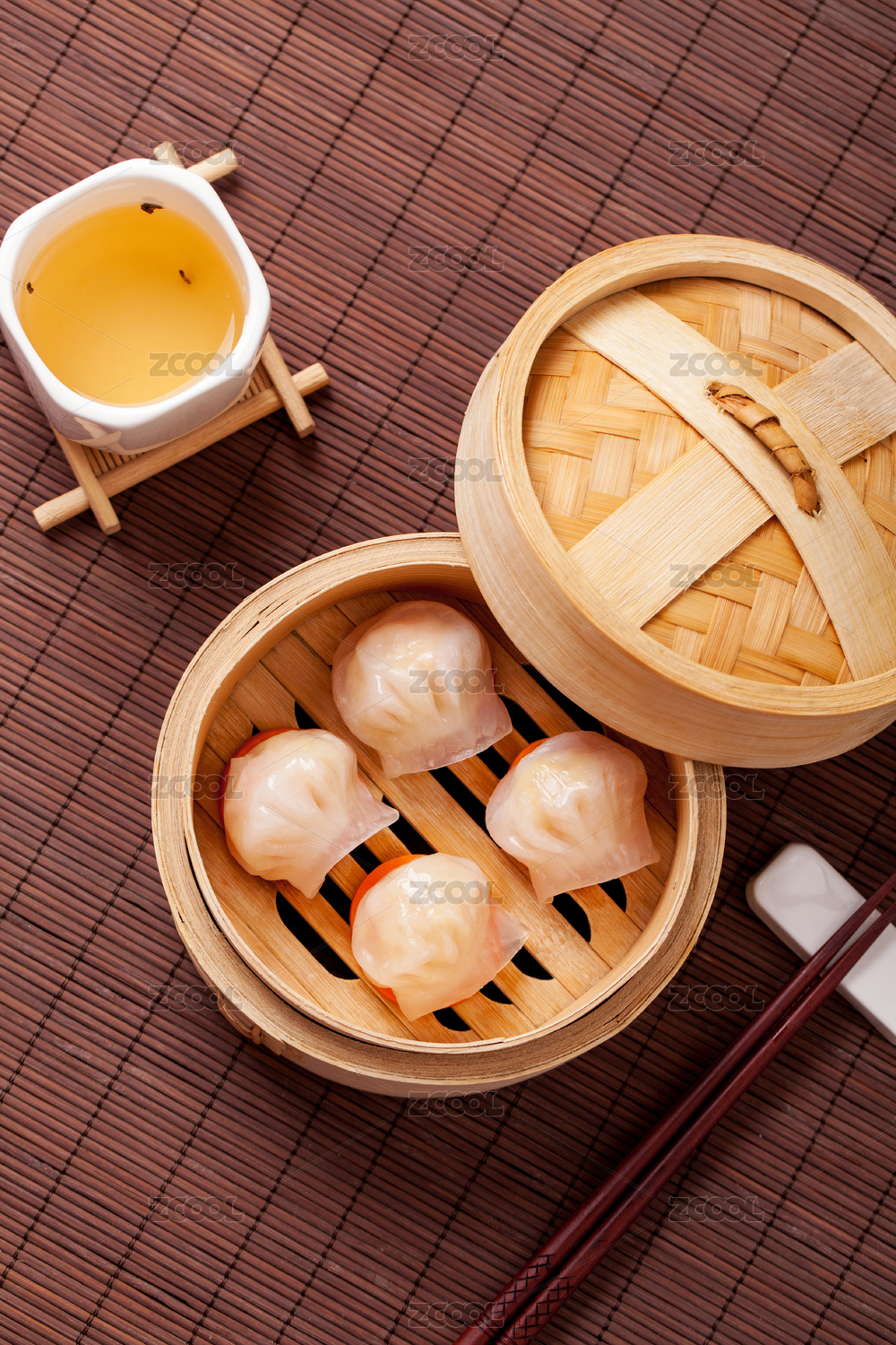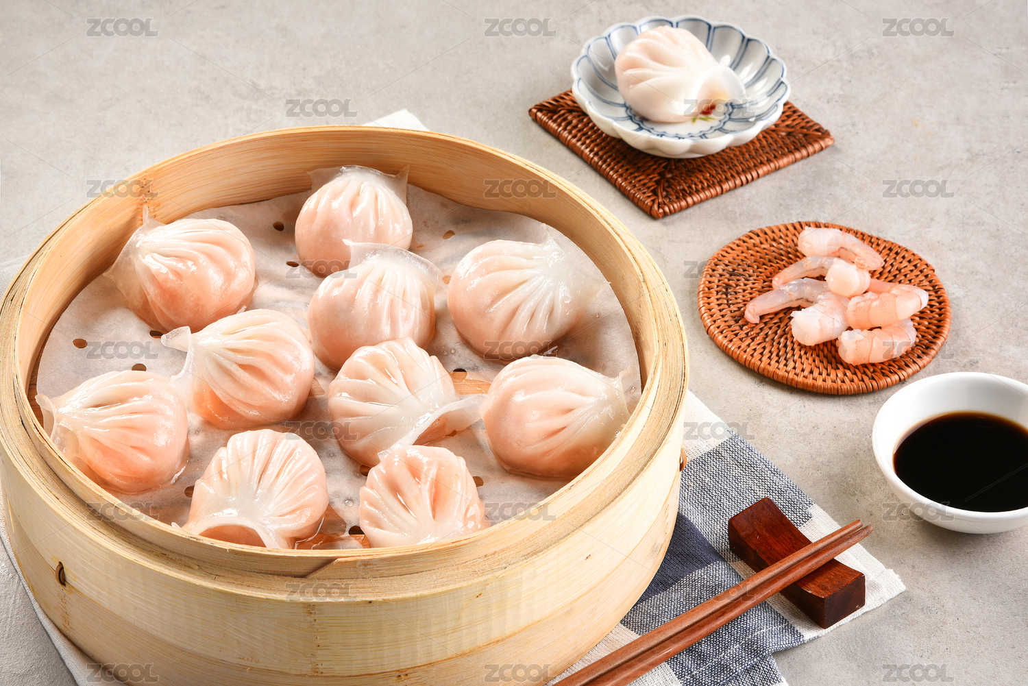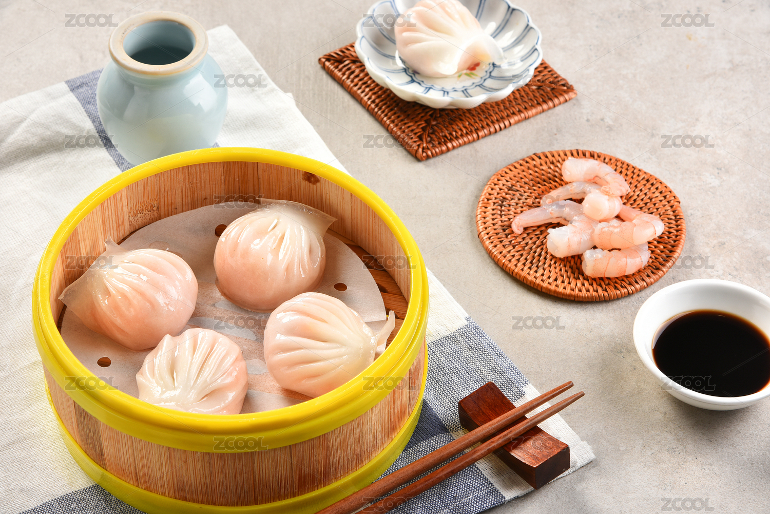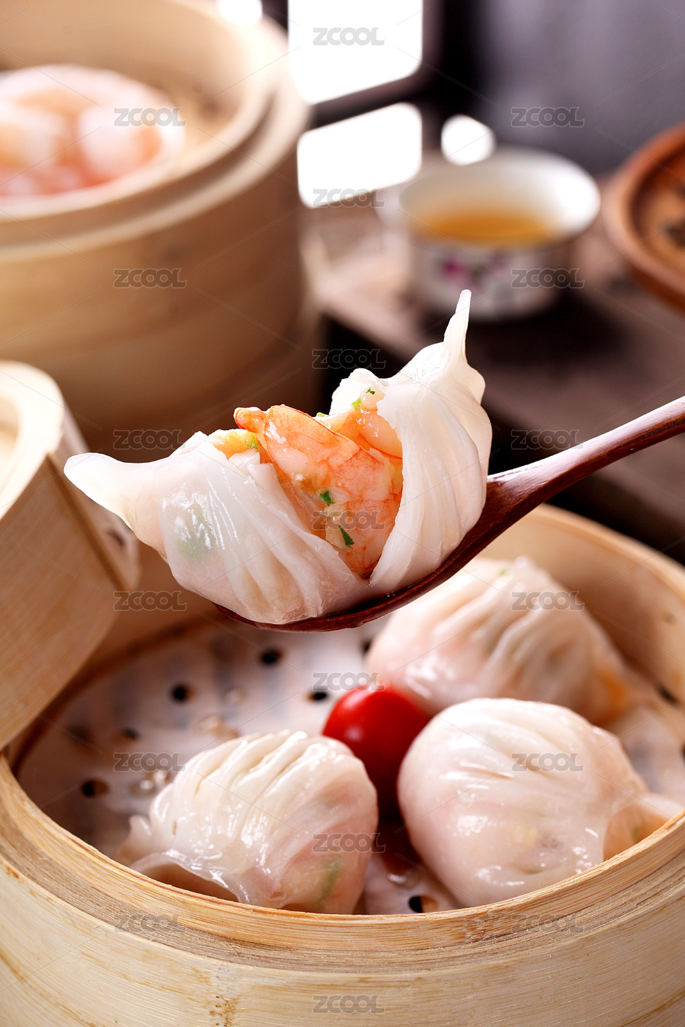 放在點(diǎn)心盤子上的廣東美食蝦餃皇