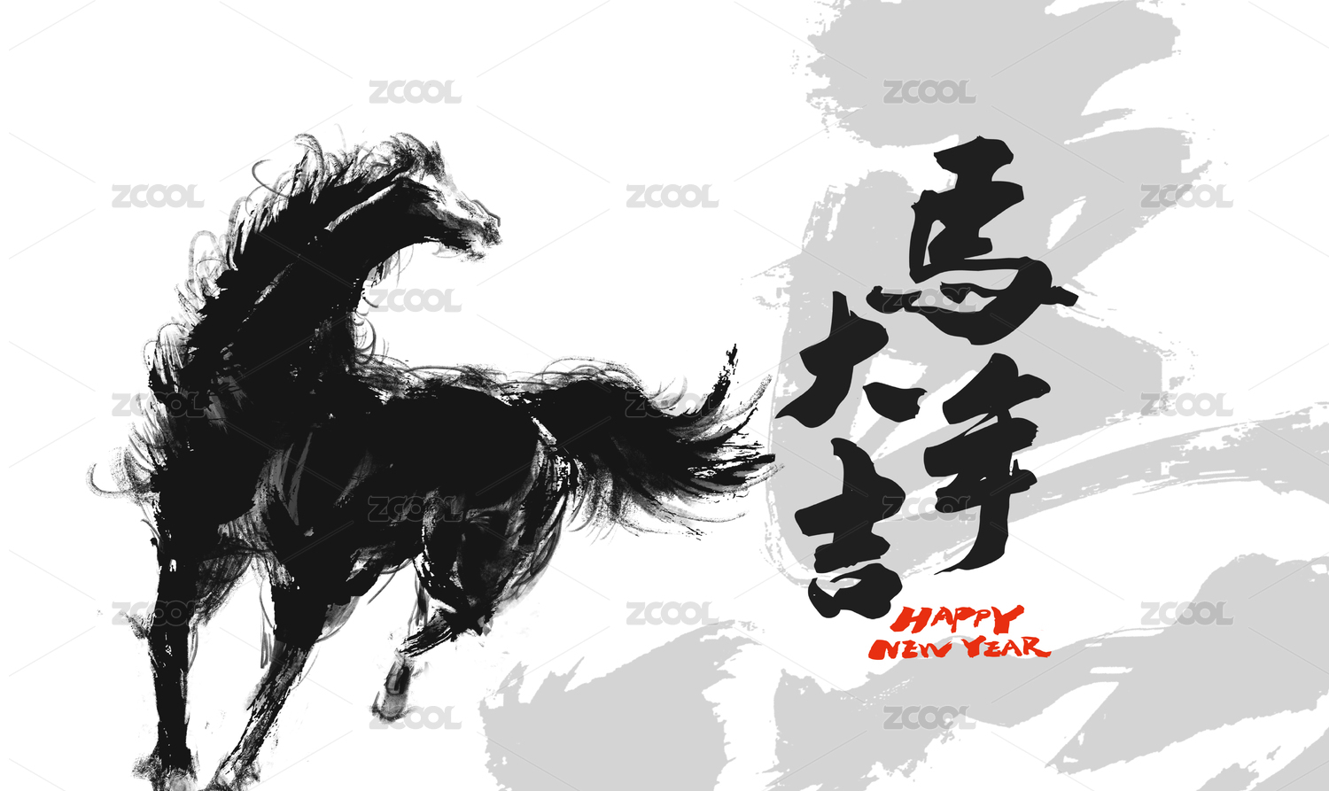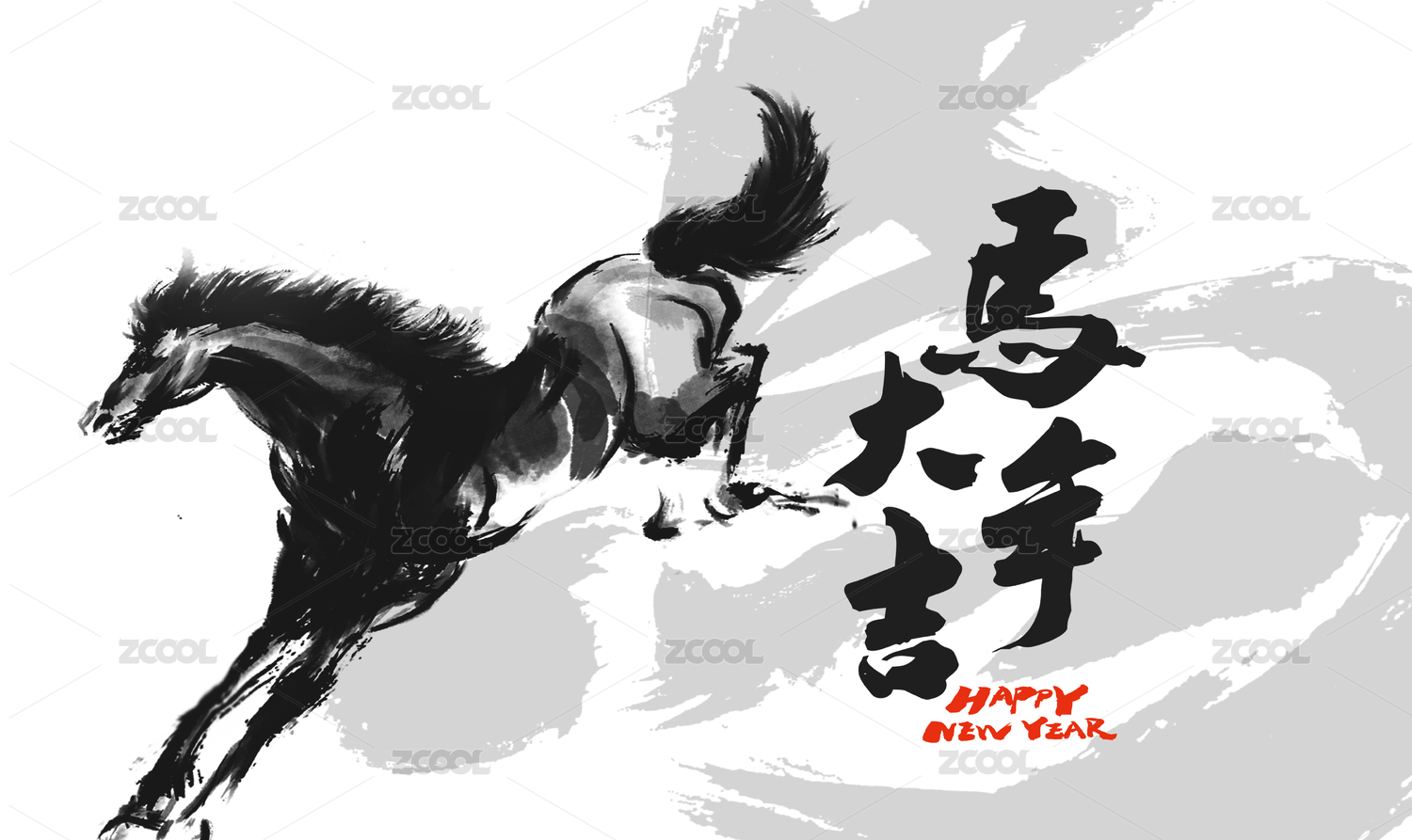中國(guó)水墨風(fēng)格馬年福馬賀歲新年海報(bào)設(shè)計(jì)