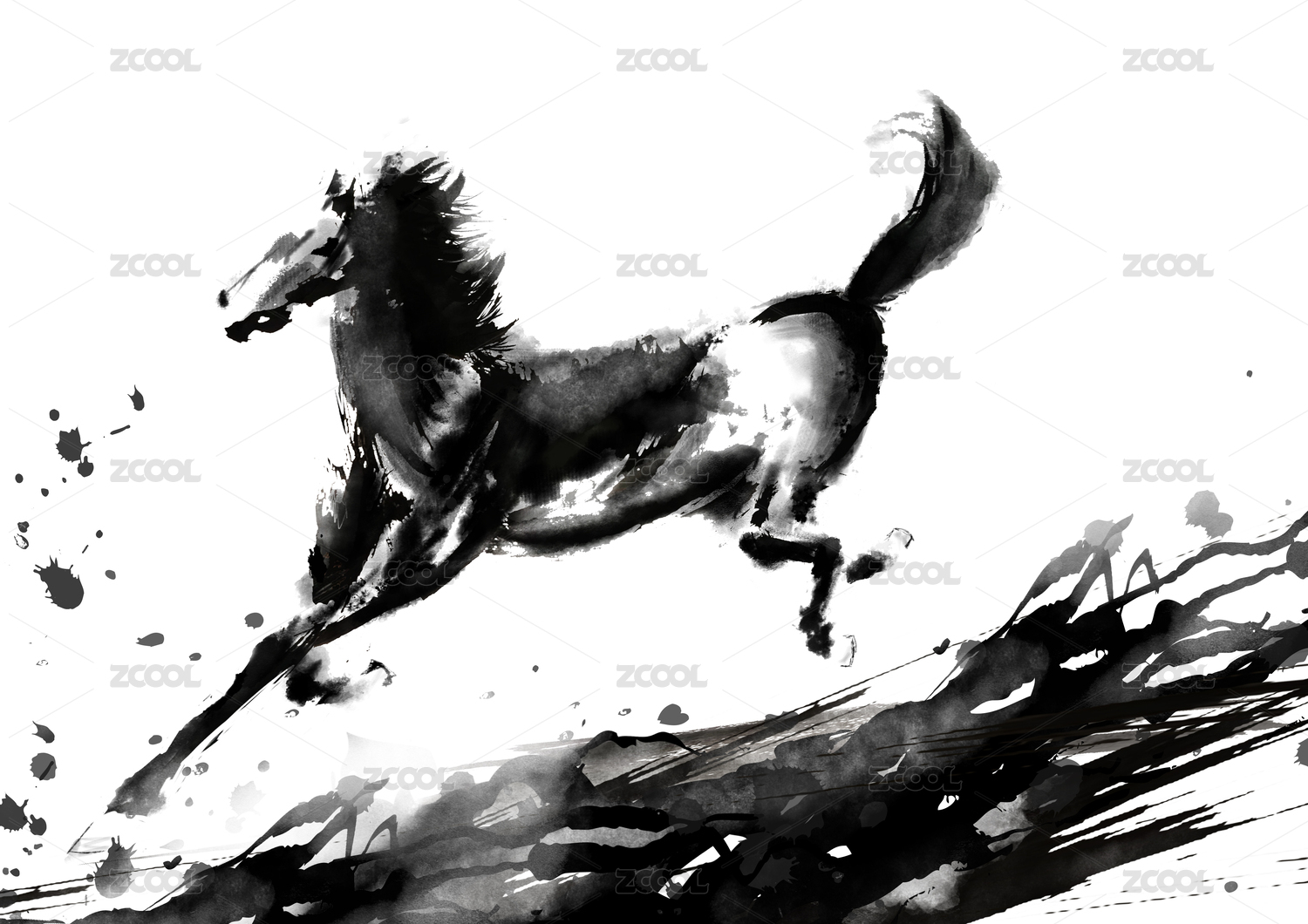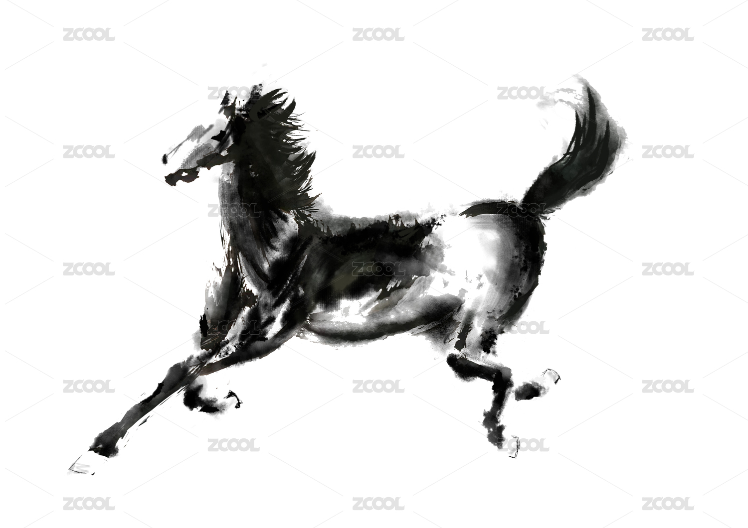 中國(guó)水墨風(fēng)格奔跑的黑馬圖片