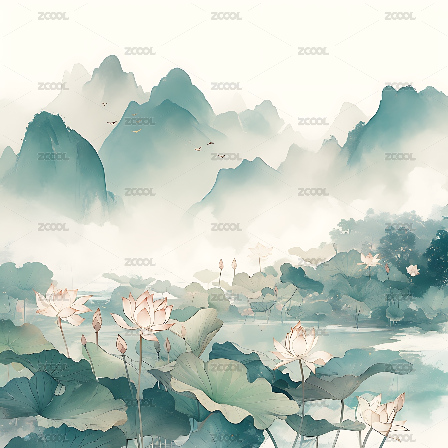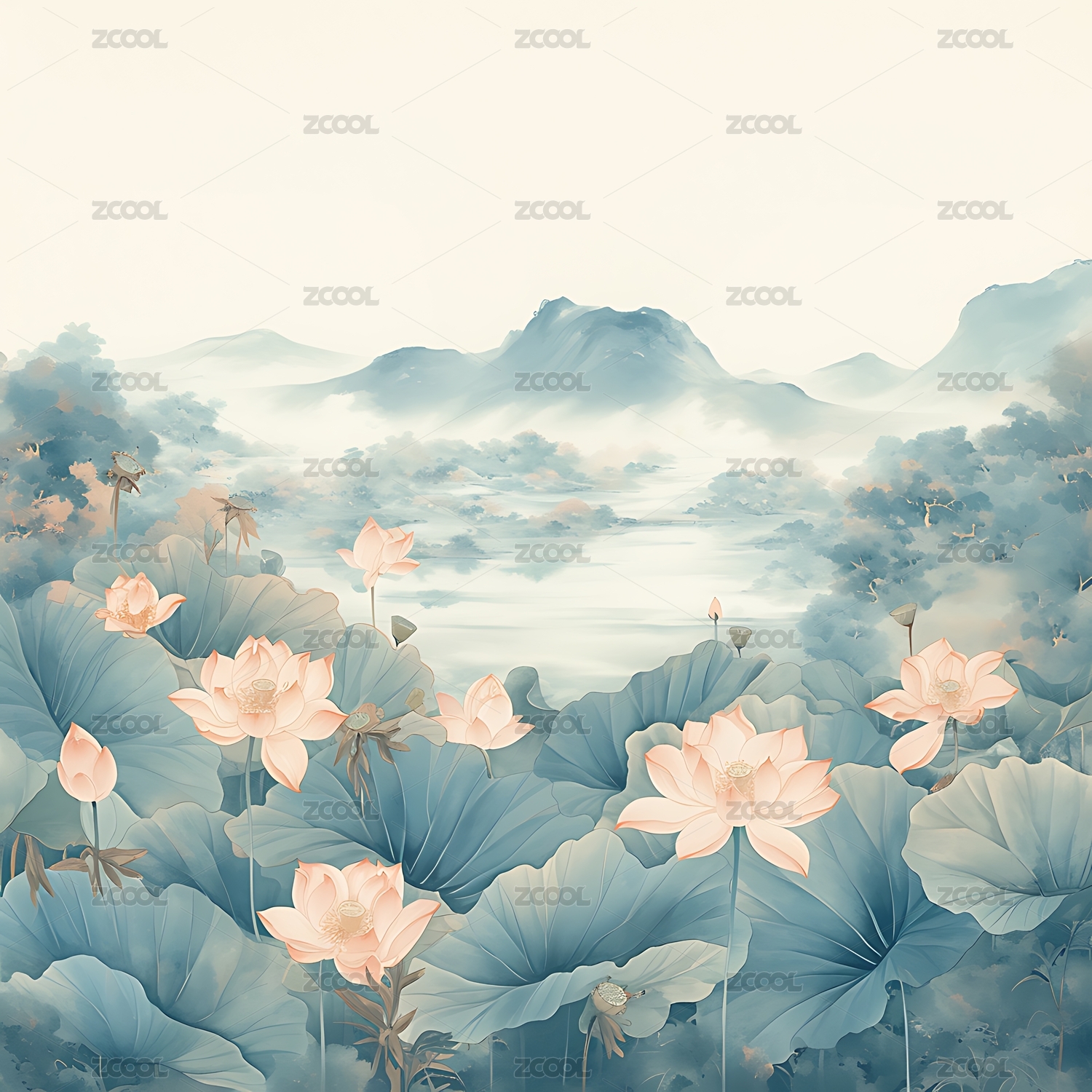 中國(guó)水墨風(fēng)荷花圖
