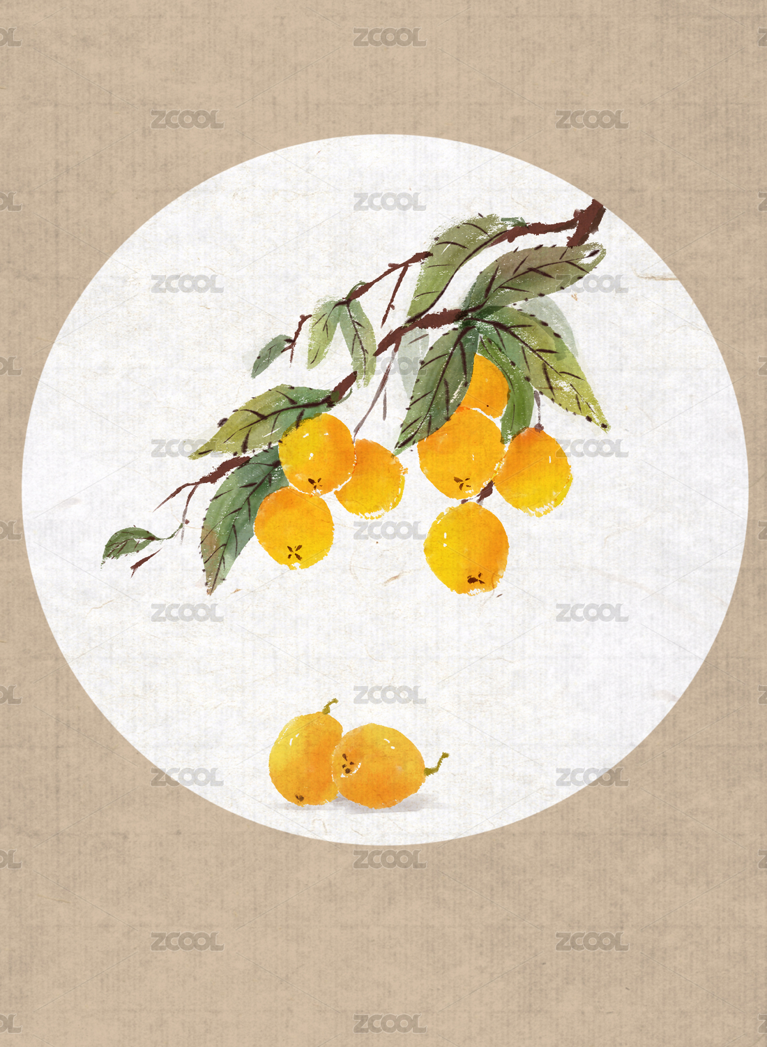 中國(guó)水墨風(fēng)格水果枇杷