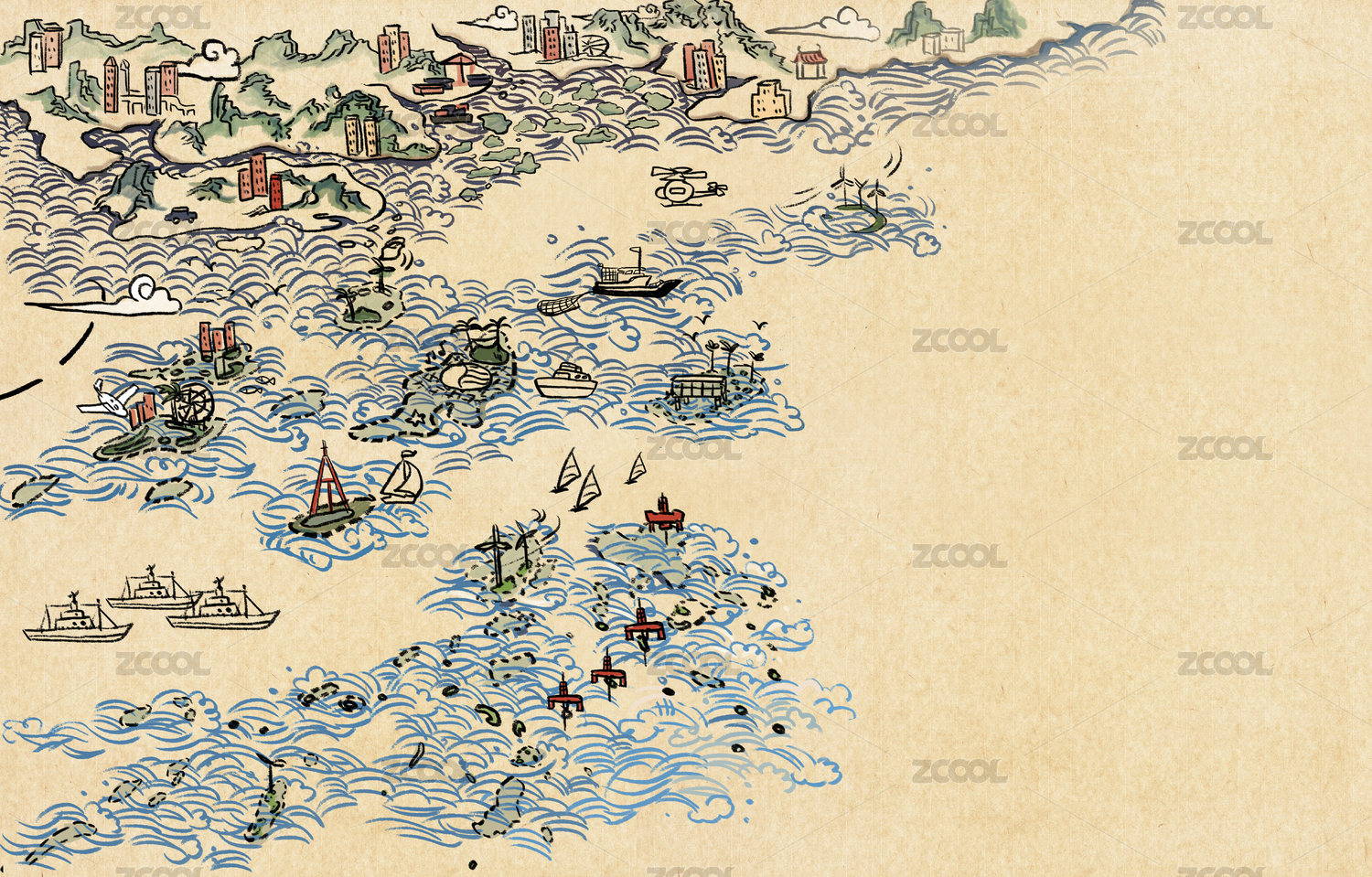 中國(guó)水墨風(fēng)沿海地圖
