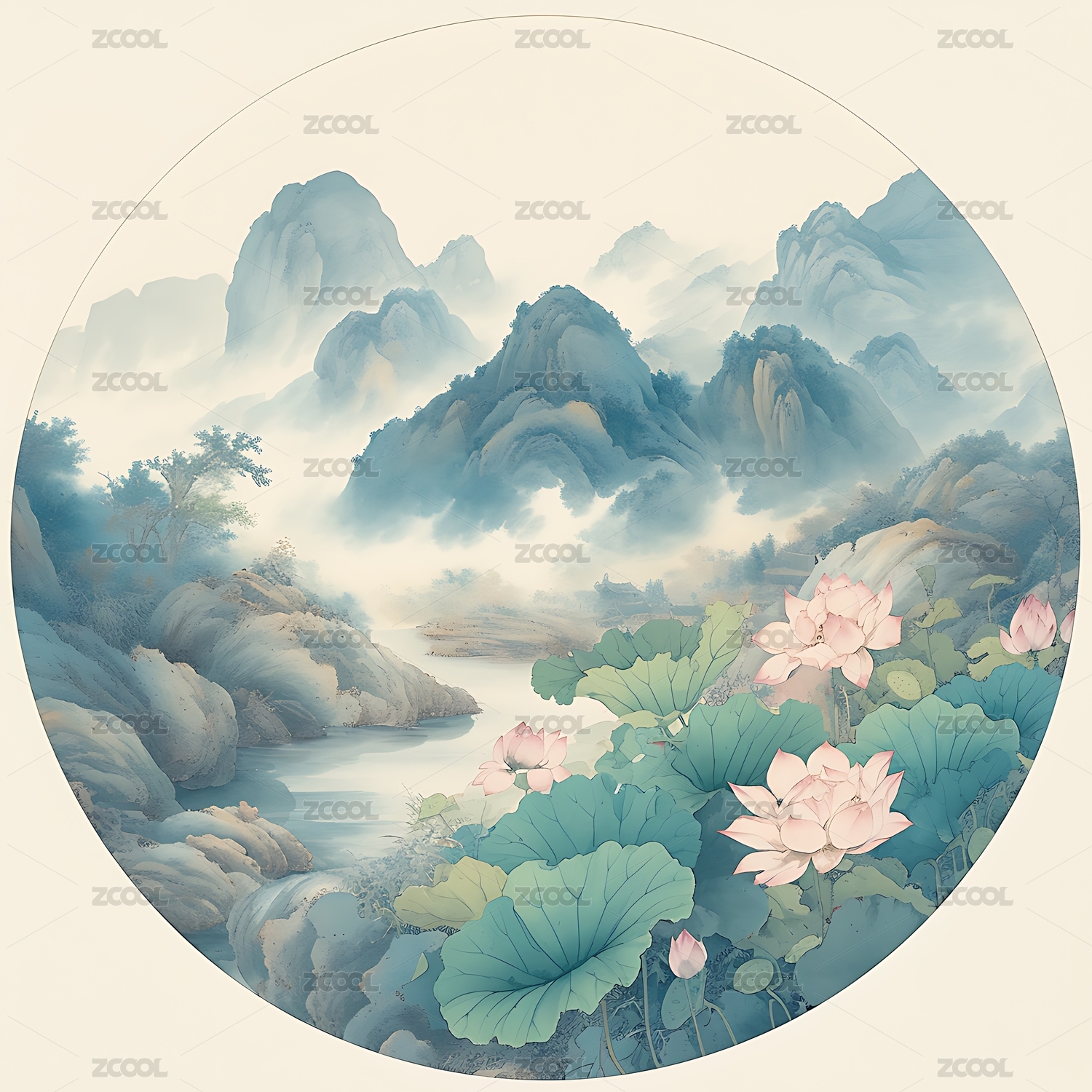 中國(guó)水墨風(fēng)格矢量山水畫