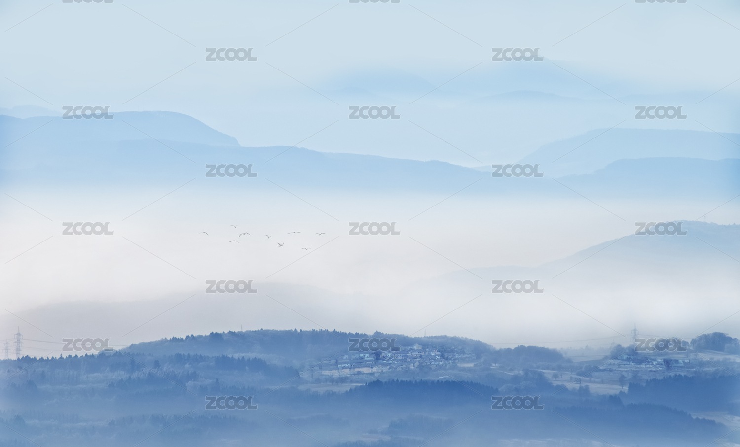 中國(guó)水墨風(fēng)格鳥瞰綿延起伏山脈景觀天際線