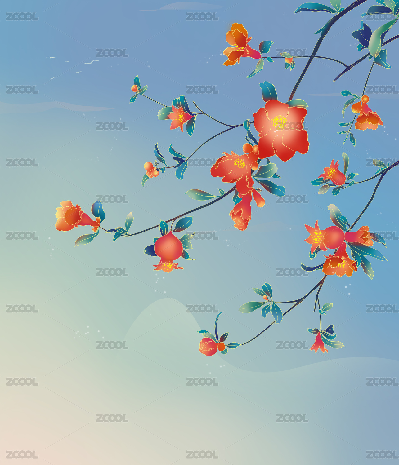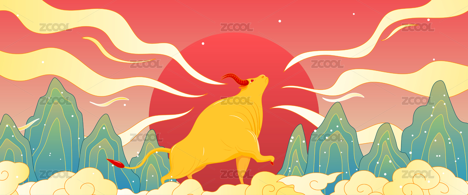 中秋節(jié)金月祥云宮殿山流云月亮國潮插畫