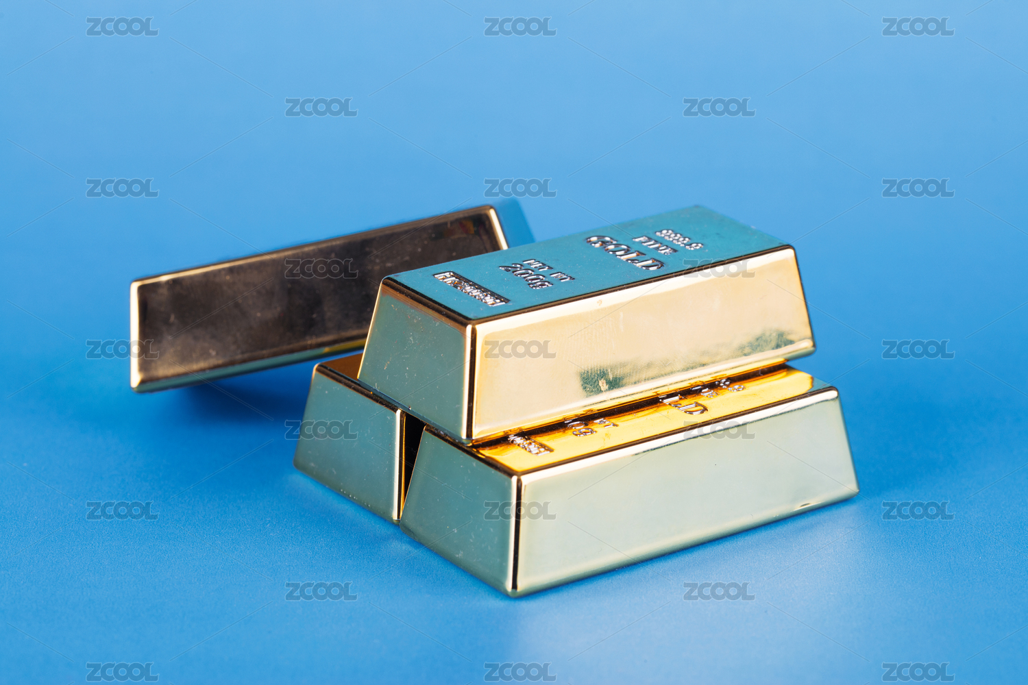 藍(lán)色背景上的金條硬通貨